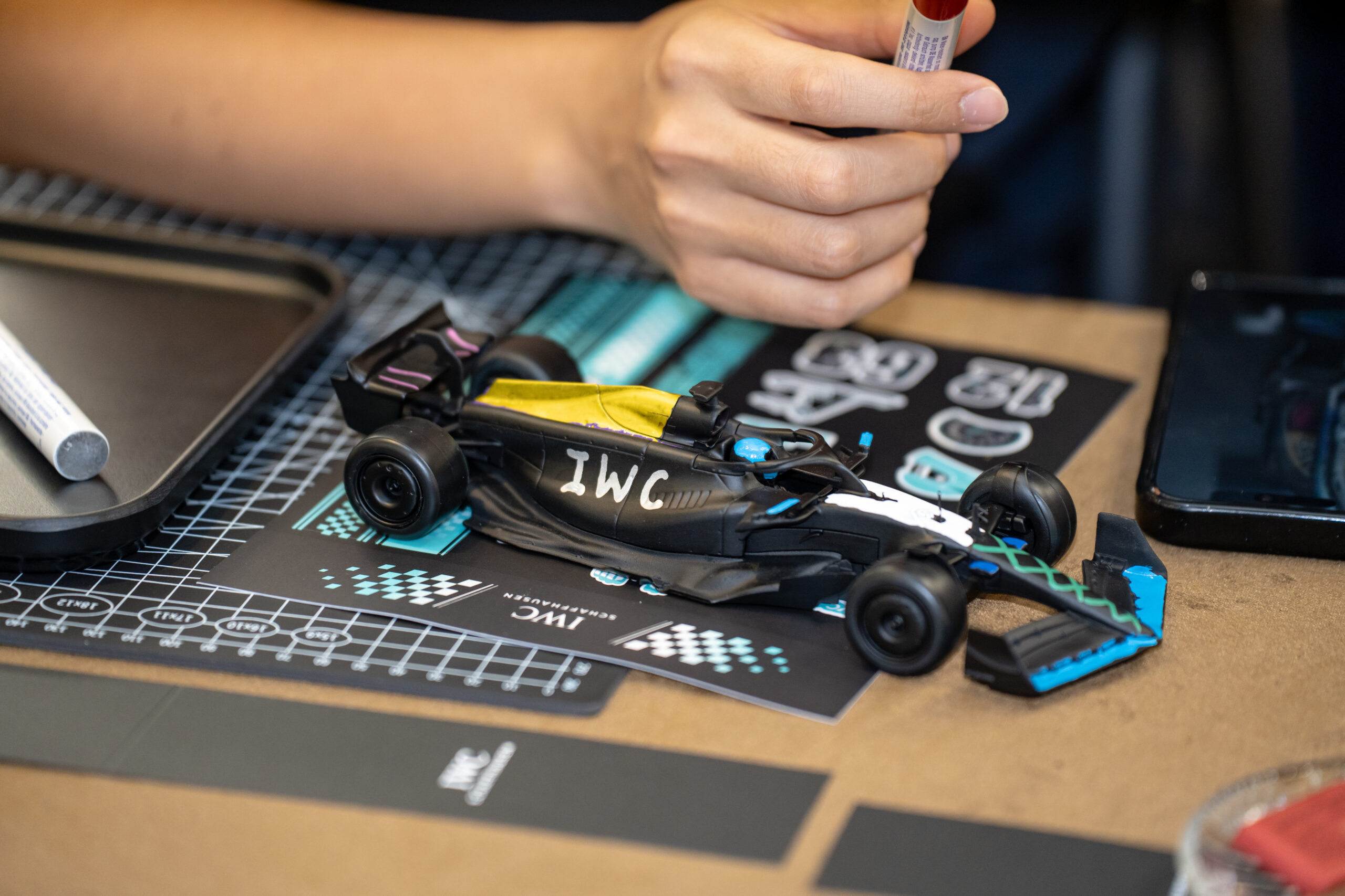 During the workshop, guests became race car designers, creating unique designs for F1 model cars while also appreciating the new watch collection from IWC Schaffhausen.