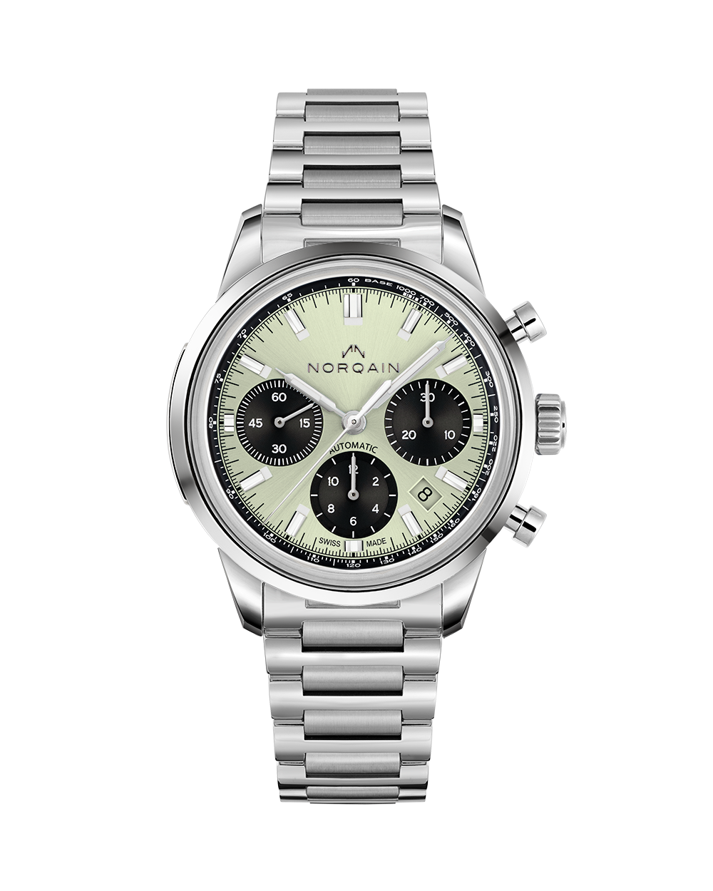 The Freedom collection is strongly tied to an appreciation of the great outdoors that carries across generations. The vintage-inspired design elements including the pistachio-coloured dial evoke the aesthetics of the 60s.