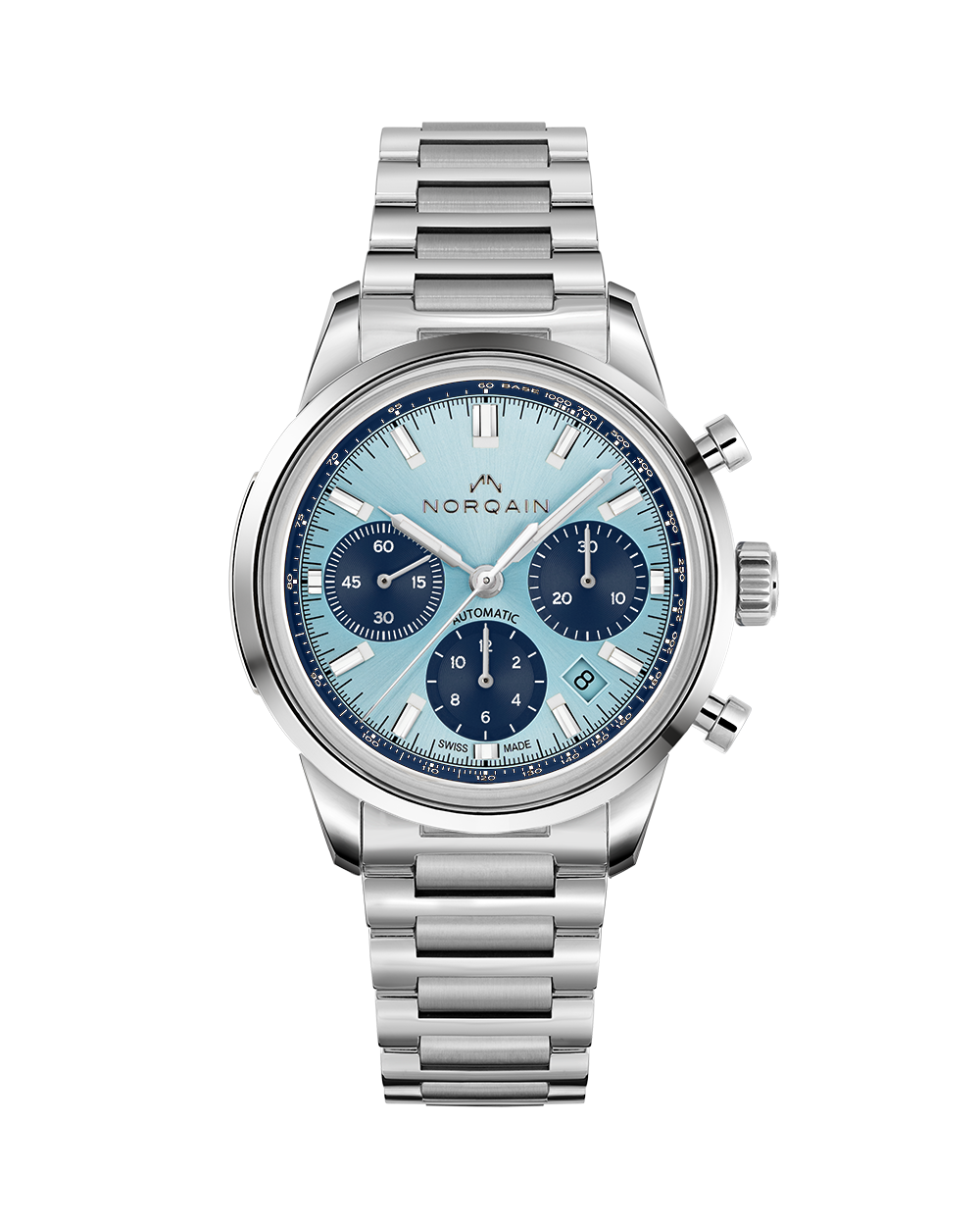 The Freedom collection is strongly tied to an appreciation of the great outdoors that carries across generations. The vintage-inspired design elements including the sky blue dial evoke the aesthetics of the 60s.