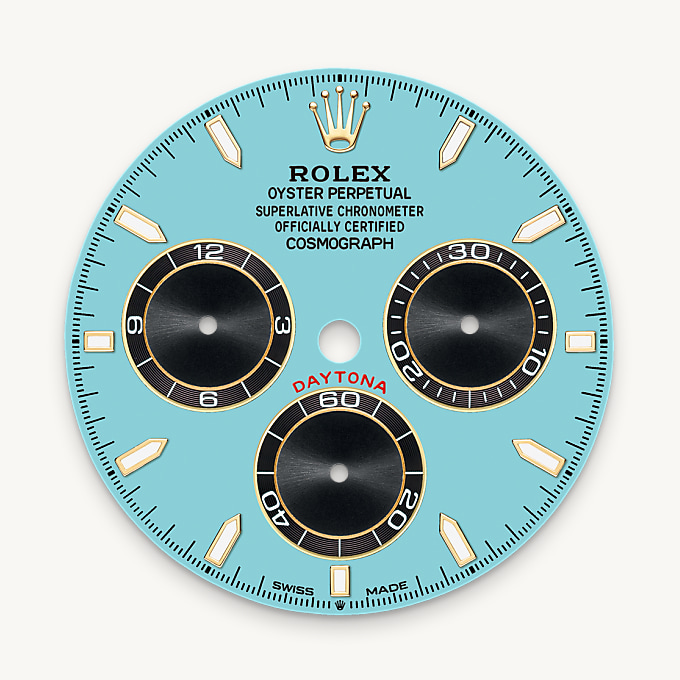 The 18 ct gold versions of the Cosmograph Daytona with a Cerachrom bezel are available with an Oysterflex bracelet. Developed by Rolex and patented, it singularly combines the robustness of a metal bracelet with the comfort of an elastomer bracelet. It is made up of two flexible curved metal blades – one in each bracelet section – overmoulded with high-performance black elastomer. For optimum comfort, the Oysterflex bracelet is equipped with cushions on its inner sides and an Oysterlock safety clasp to prevent accidental opening. Its length may be adjusted via the ingenious Rolex Glidelock extension system.