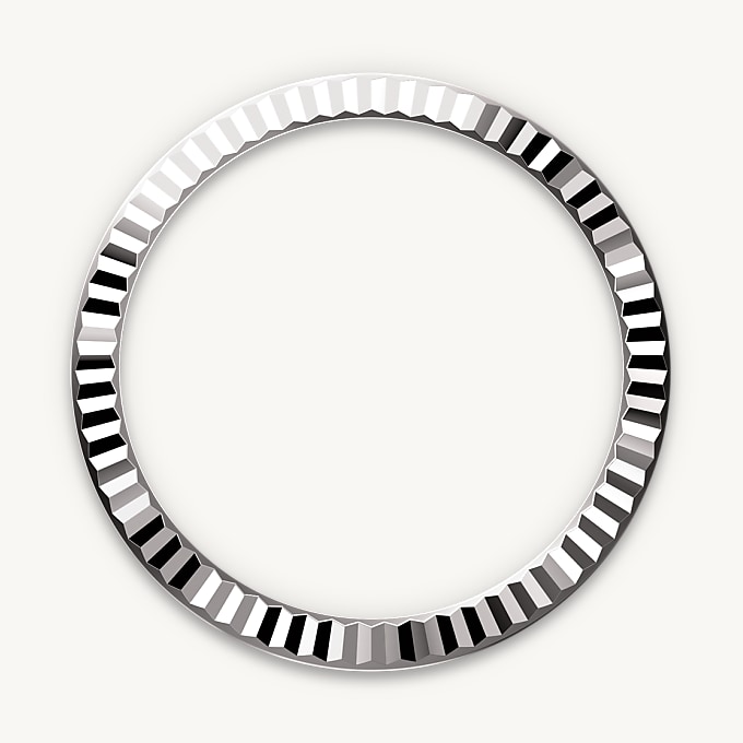 The Rolex fluted bezel is a mark of distinction. Originally, the fluting of the Oyster bezel had a functional purpose: it served to screw the bezel onto the case helping to ensure the waterproofness of the watch. It was therefore identical to the fluting on the case back, which was also screwed onto the case for waterproofness, using specific Rolex tools. Over time, the fluting became an aesthetic element, a genuine Rolex signature feature. Today the fluted bezel is a mark of distinction, in gold on this Lady-Datejust.