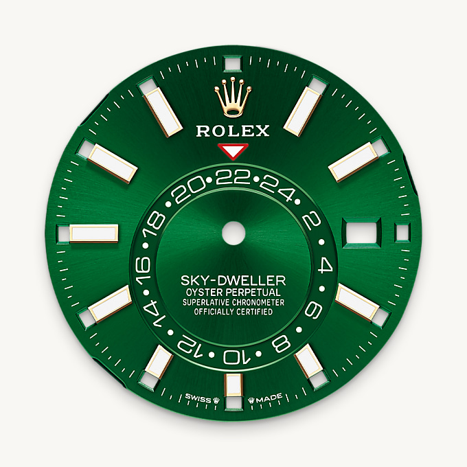 The Rolex fluted bezel is a mark of distinction. Originally, the fluting of the Oyster bezel had a functional purpose: it served to screw the bezel onto the case, helping to ensure the waterproofness of the watch. It was therefore identical to the fluting on the case back, which was also screwed onto the case for waterproofness, using specific Rolex tools. Over time, the fluting became an aesthetic element, a genuine Rolex signature feature. Today the fluted bezel is a mark of distinction, always in gold. The Sky-Dweller is equipped with a mechanism of interaction between the rotatable bezel, the winding crown and the movement: the Ring Command system, which allows the user to select the watch’s functions one-by-one and to set them easily, quickly and securely.