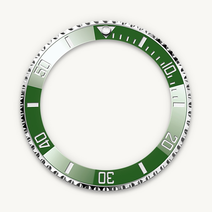 Unidirectional rotatable 60-minute graduated, scratch-resistant Cerachrom insert in green ceramic, numerals and graduations coated in platinum