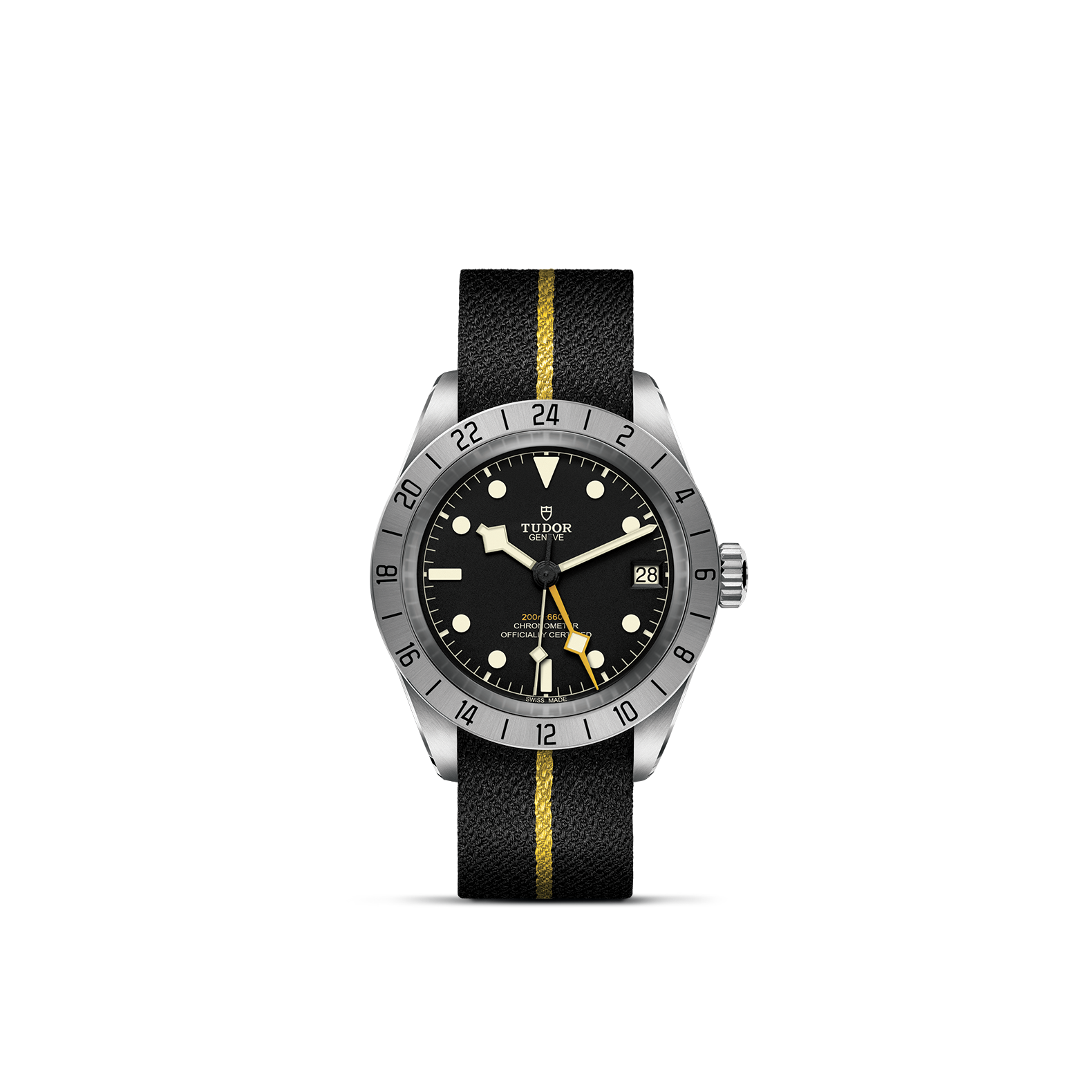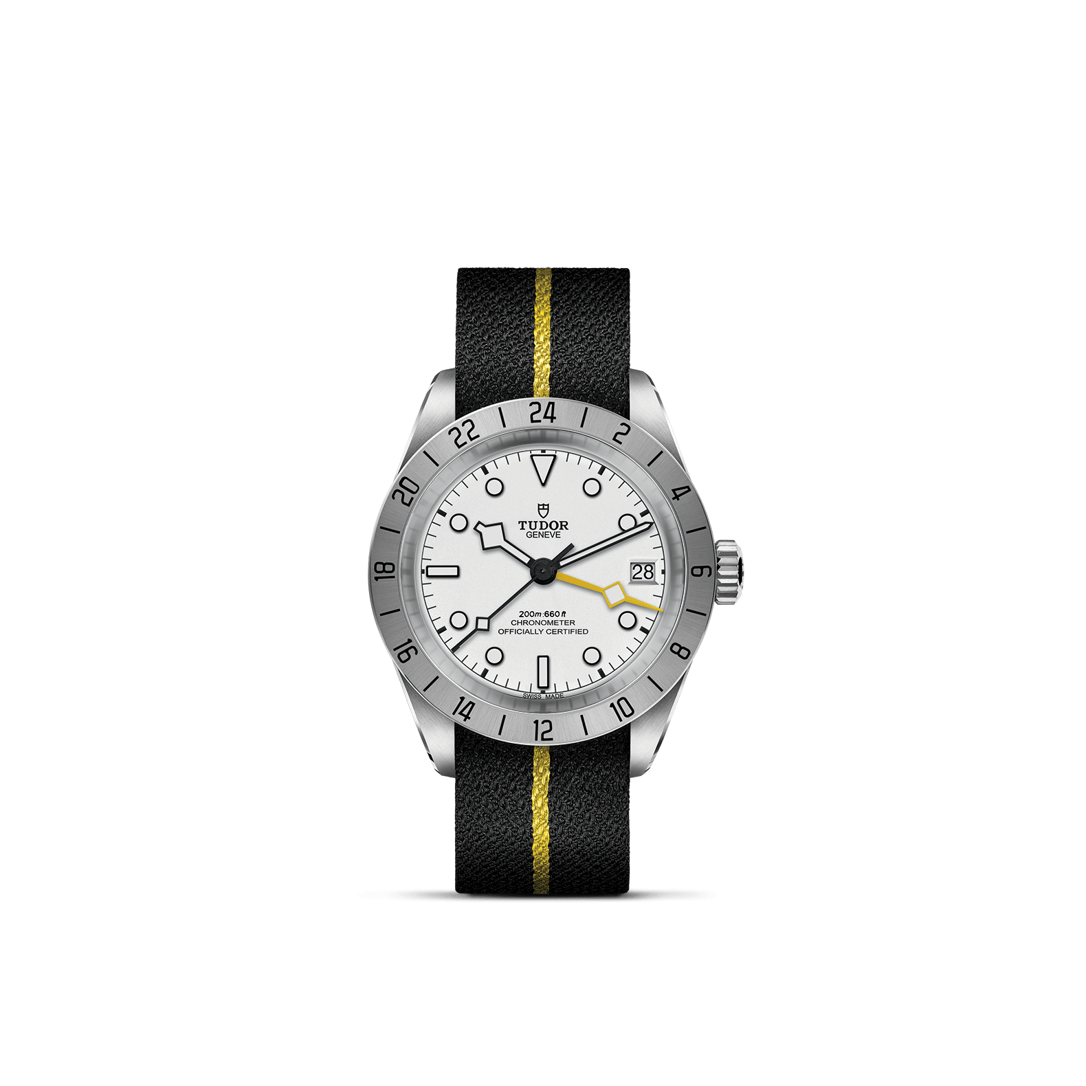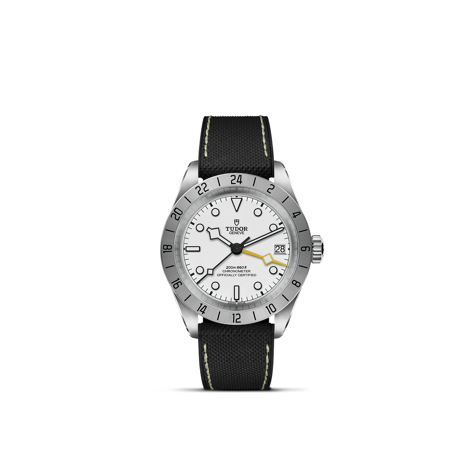 Black Bay Pro features a dual time zone function, a technical complication that establishes local time without losing sight of the time in another time zone. Compact, robust and sporty, this model boasts many unique aesthetic details and celebrates the spirit of the technical watches that TUDOR has produced for professionals throughout its history. Recognisable by its 24-hour graduated satin-brushed fixed bezel and its yellow 24-hour “Snowflake” hand, Black Bay Pro is powered by the TUDOR Manufacture Calibre MT5652 with built-in GMT function. This year sees an opaline dial join the range.