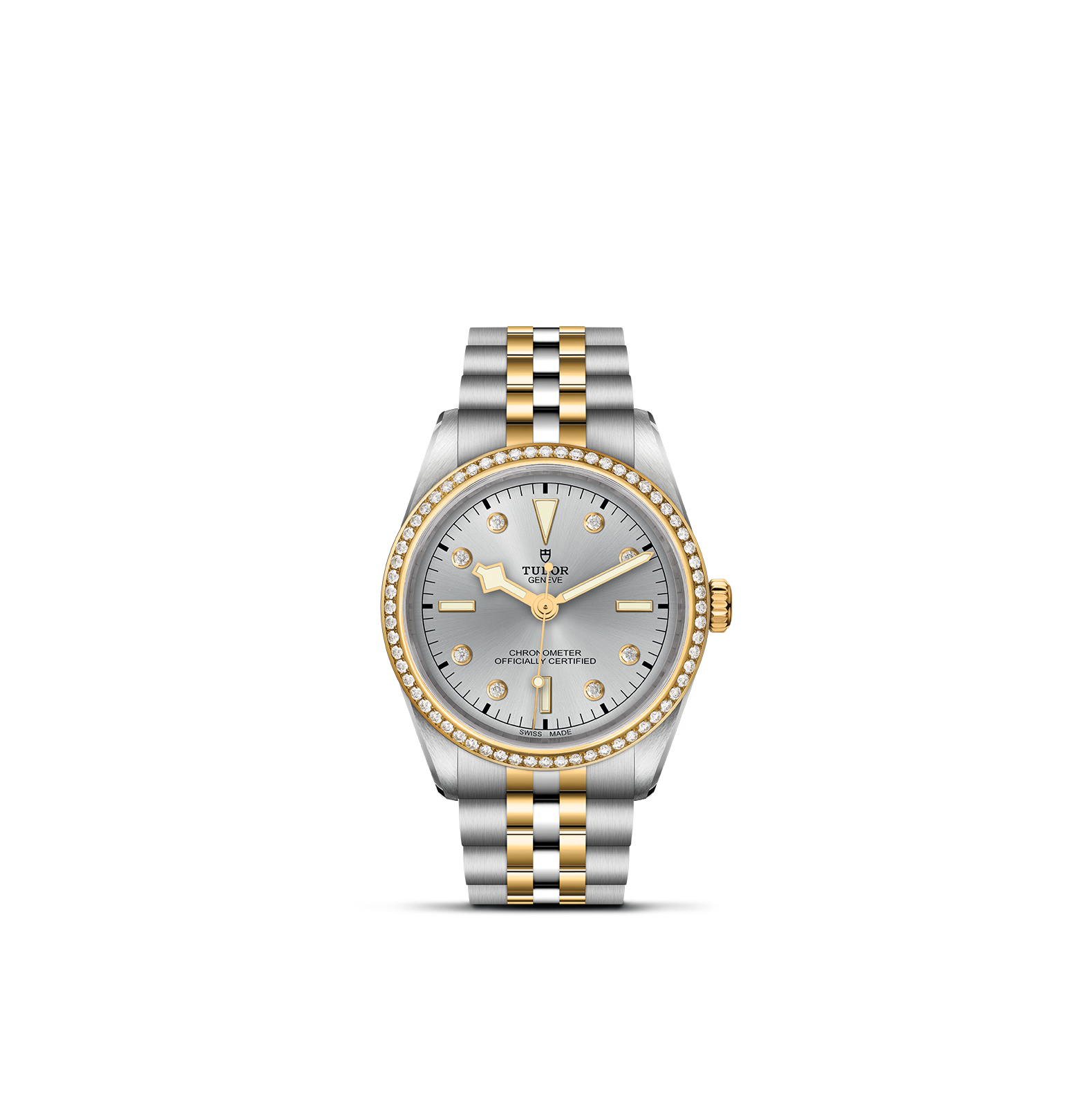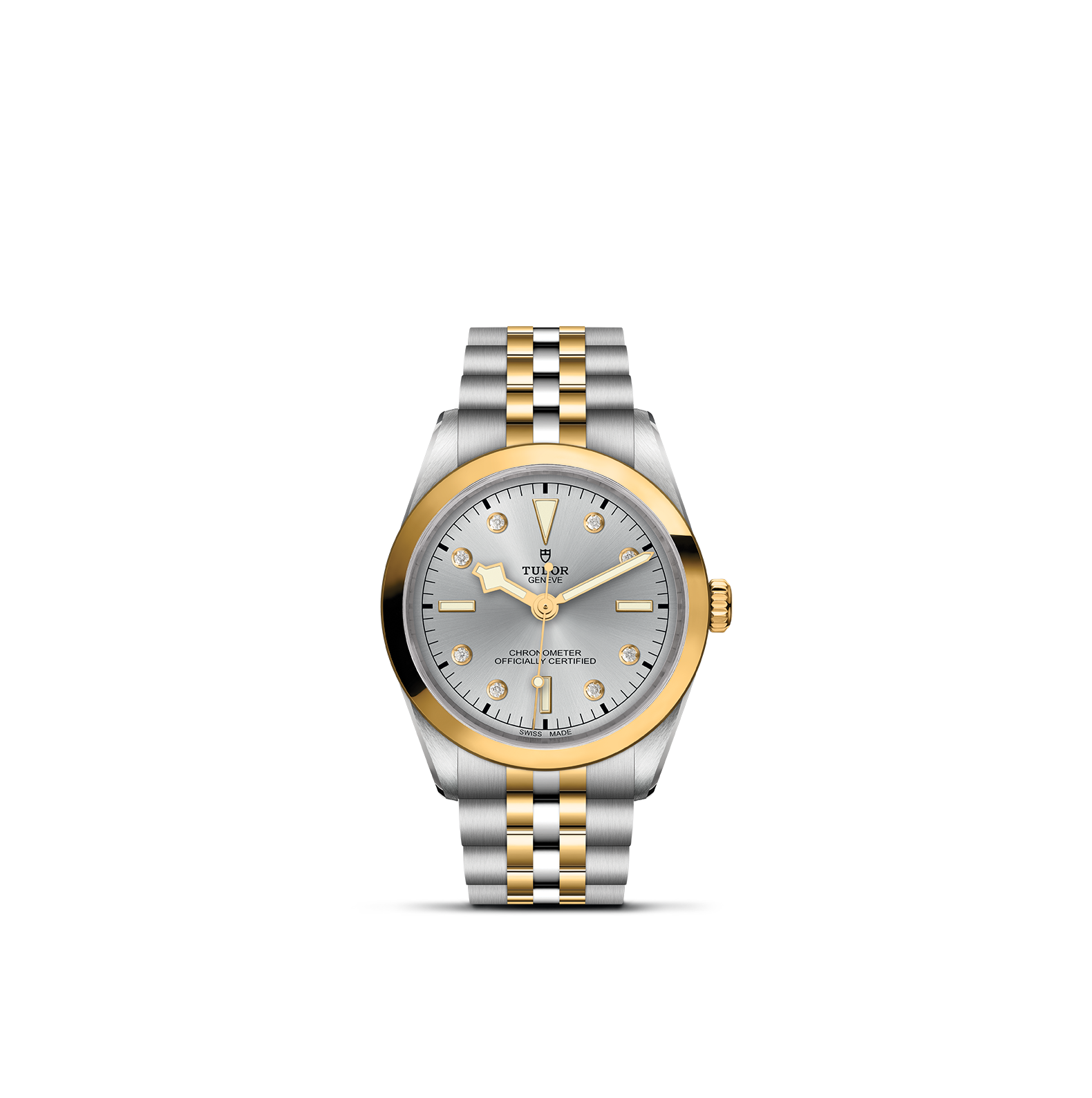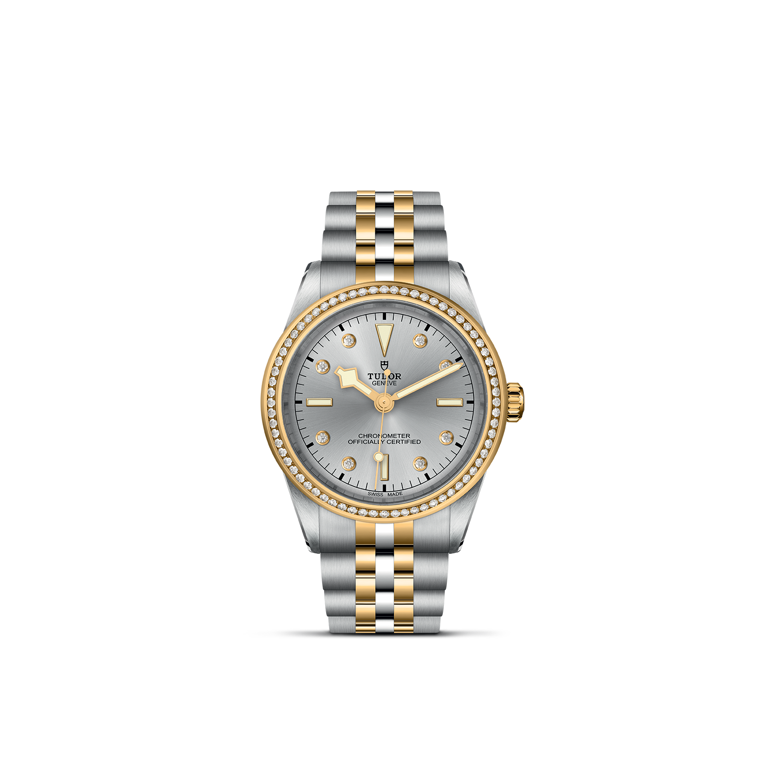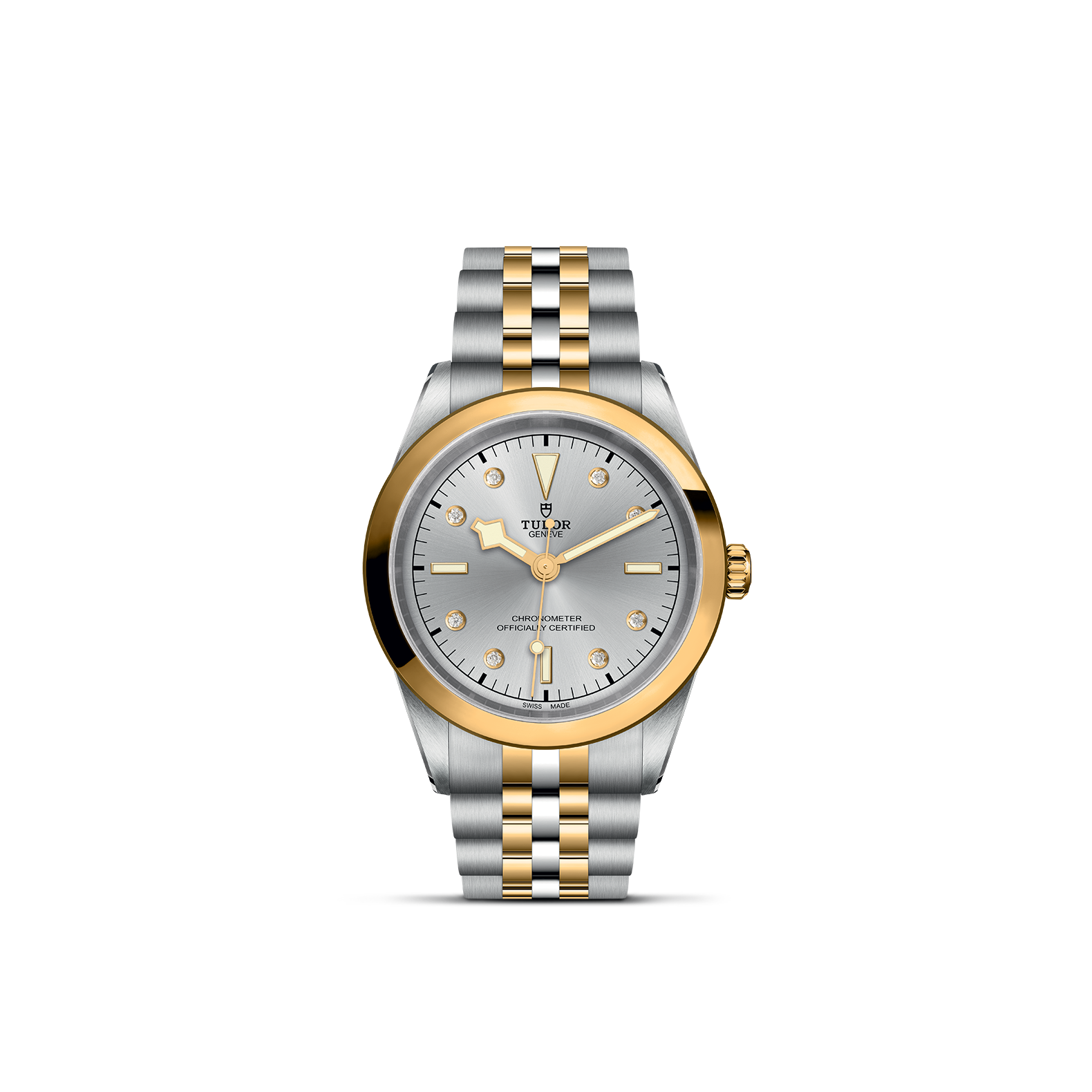 Screw-down winding crown with the TUDOR rose in relief. Steel covered by a 0.1mm yellow gold cap