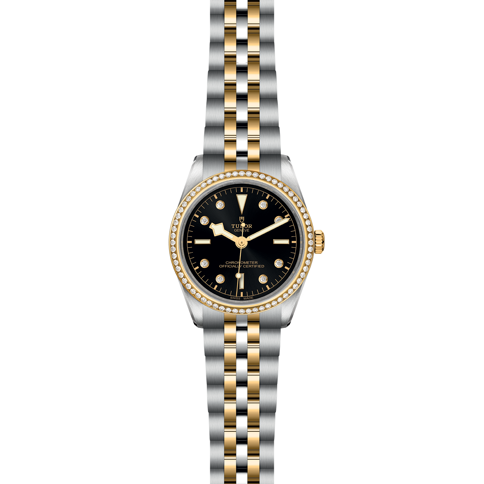 Screw-down winding crown with the TUDOR rose in relief. Steel covered by a 0.1mm yellow gold cap