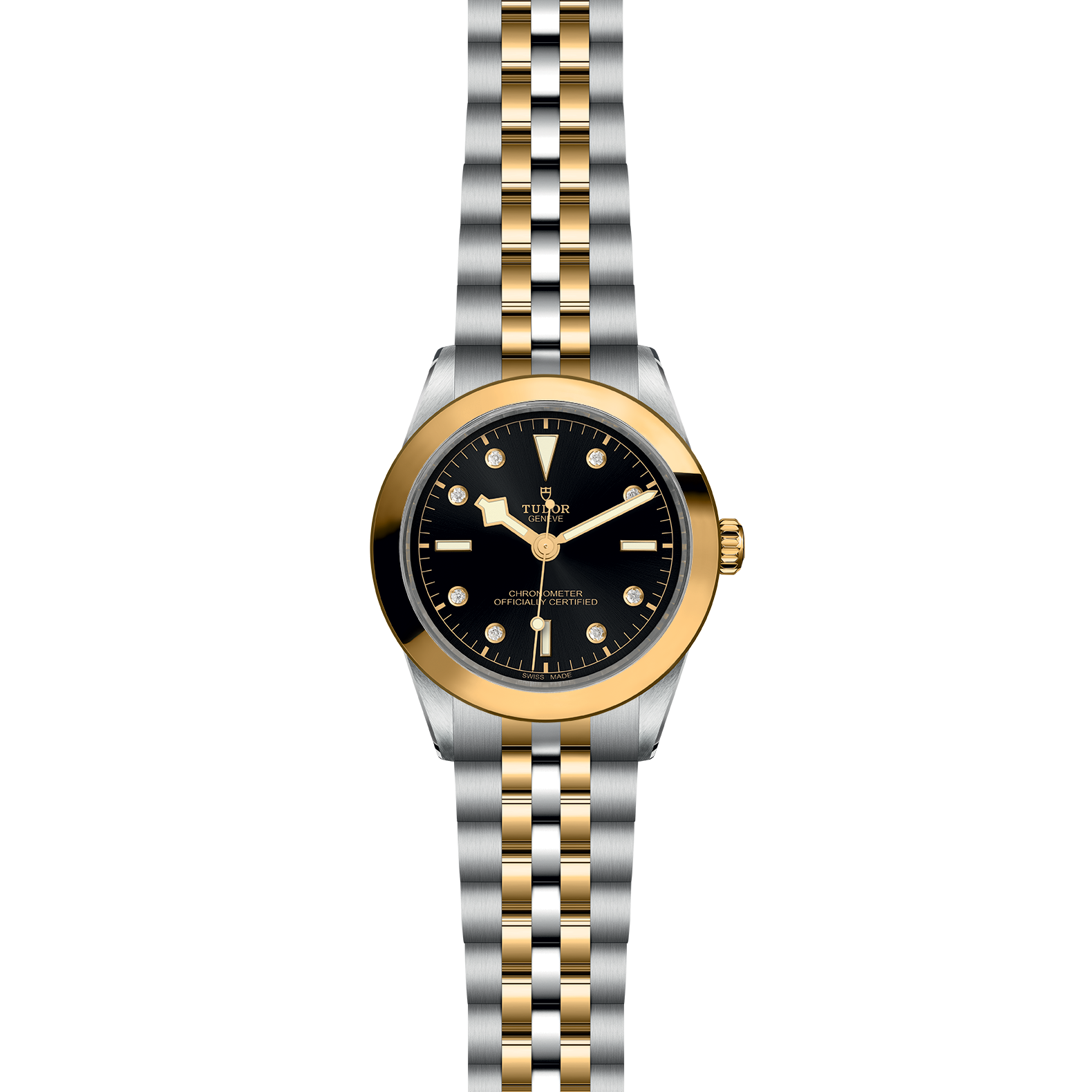 Screw-down winding crown with the TUDOR rose in relief. Steel covered by a 0.1mm yellow gold cap