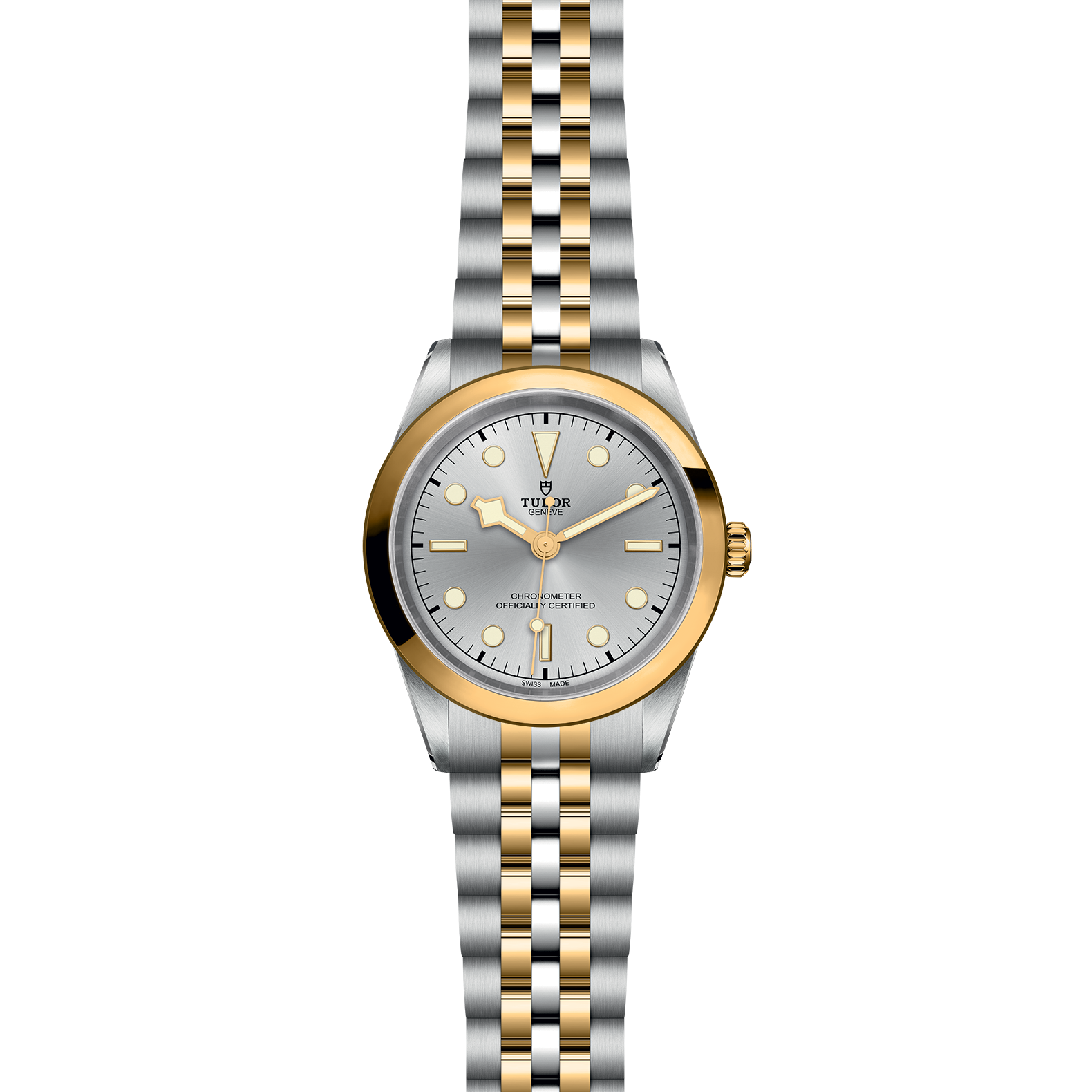 Screw-down winding crown with the TUDOR rose in relief. Steel covered by a 0.1mm yellow gold cap