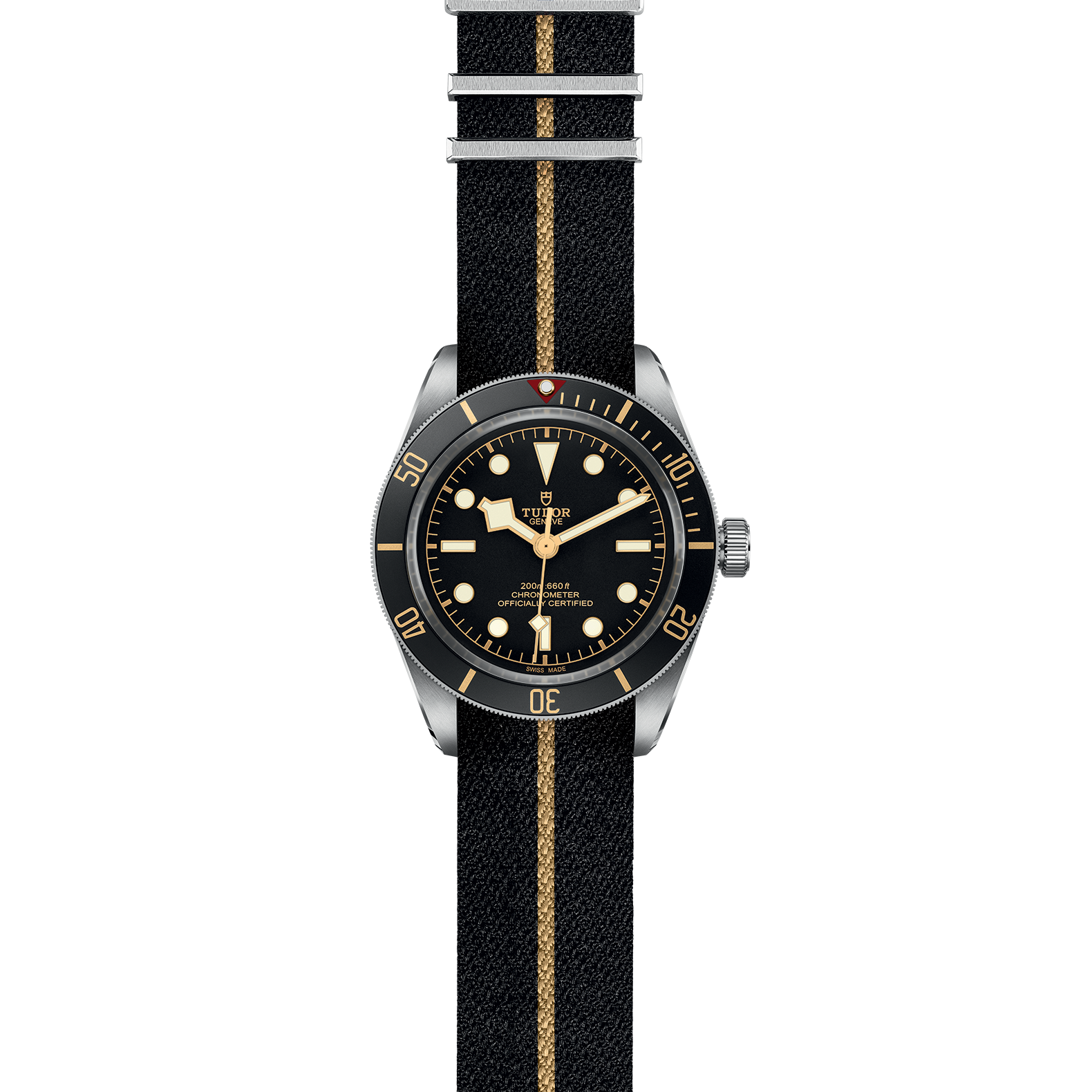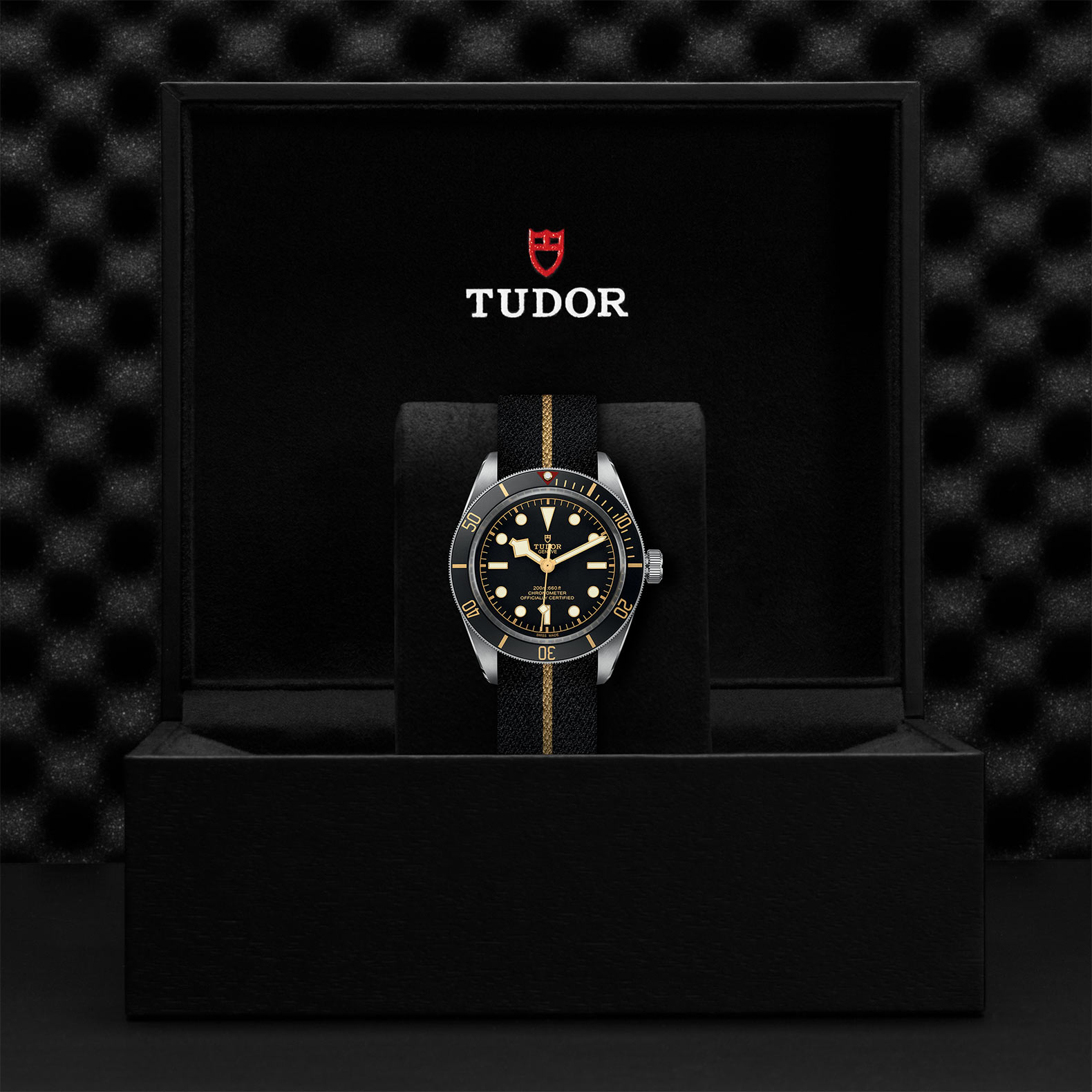 Steel screw-down winding crown, with the TUDOR rose in relief, with circular satin-brushed steel winding crown tube