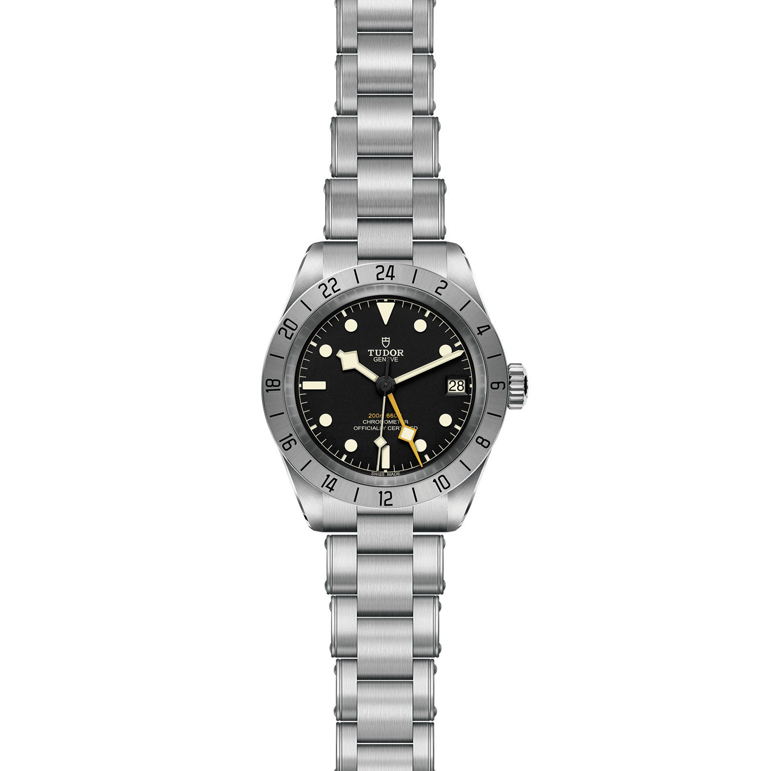 Black Bay Pro features a dual time zone function, a technical complication that establishes local time without losing sight of the time in another time zone. Compact, robust and sporty, this model boasts many unique aesthetic details and celebrates the spirit of the technical watches that TUDOR has produced for professionals throughout its history. Recognisable by its 24-hour graduated satin-brushed fixed bezel and its yellow 24-hour “Snowflake” hand, Black Bay Pro is powered by the TUDOR Manufacture Calibre MT5652 with built-in GMT function. This year sees an opaline dial join the range.