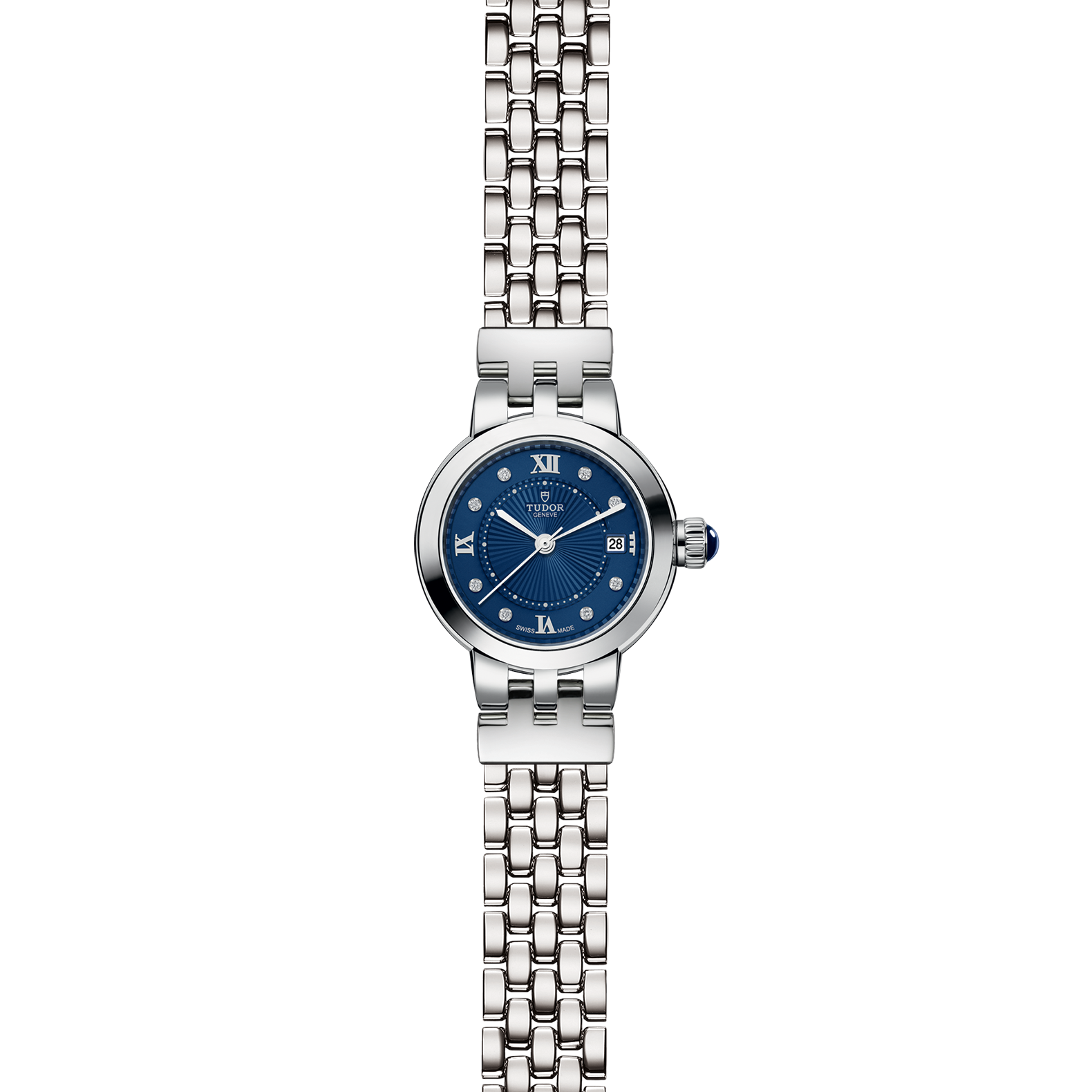 The Clair de Rose line, reimagined in a classic, refined and timeless spirit, uses the brand’s historic aesthetic codes. The Clair de Rose collection is available exclusively in steel and in six configurations and three sizes, 26, 30 and 34mm in diameter, it presents opaline dials with delicate decorations in relief, punctuated with blue lacquered Roman numerals or diamonds.