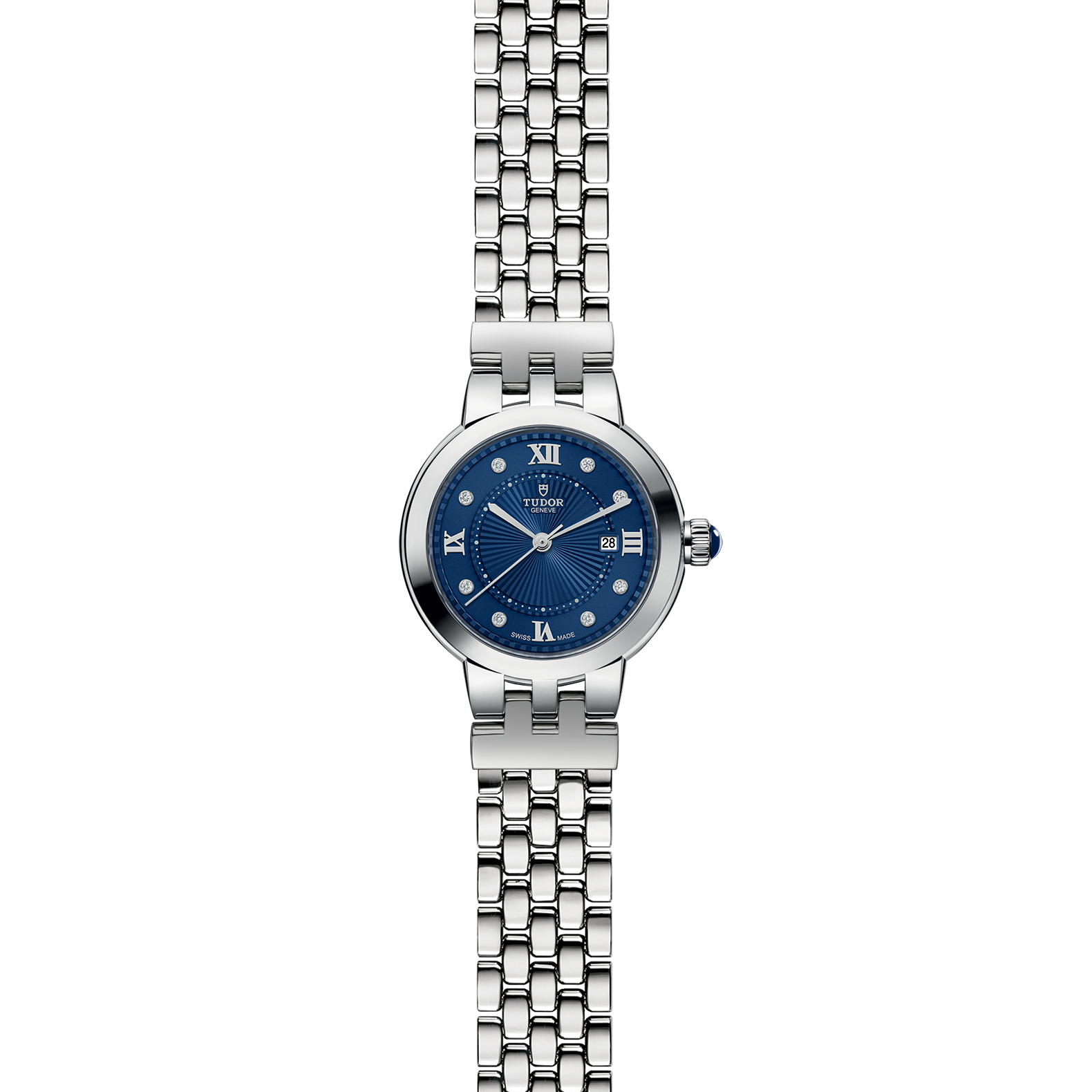 The Clair de Rose line, reimagined in a classic, refined and timeless spirit, uses the brand’s historic aesthetic codes. The Clair de Rose collection is available exclusively in steel and in six configurations and three sizes, 26, 30 and 34mm in diameter, it presents opaline dials with delicate decorations in relief, punctuated with blue lacquered Roman numerals or diamonds.