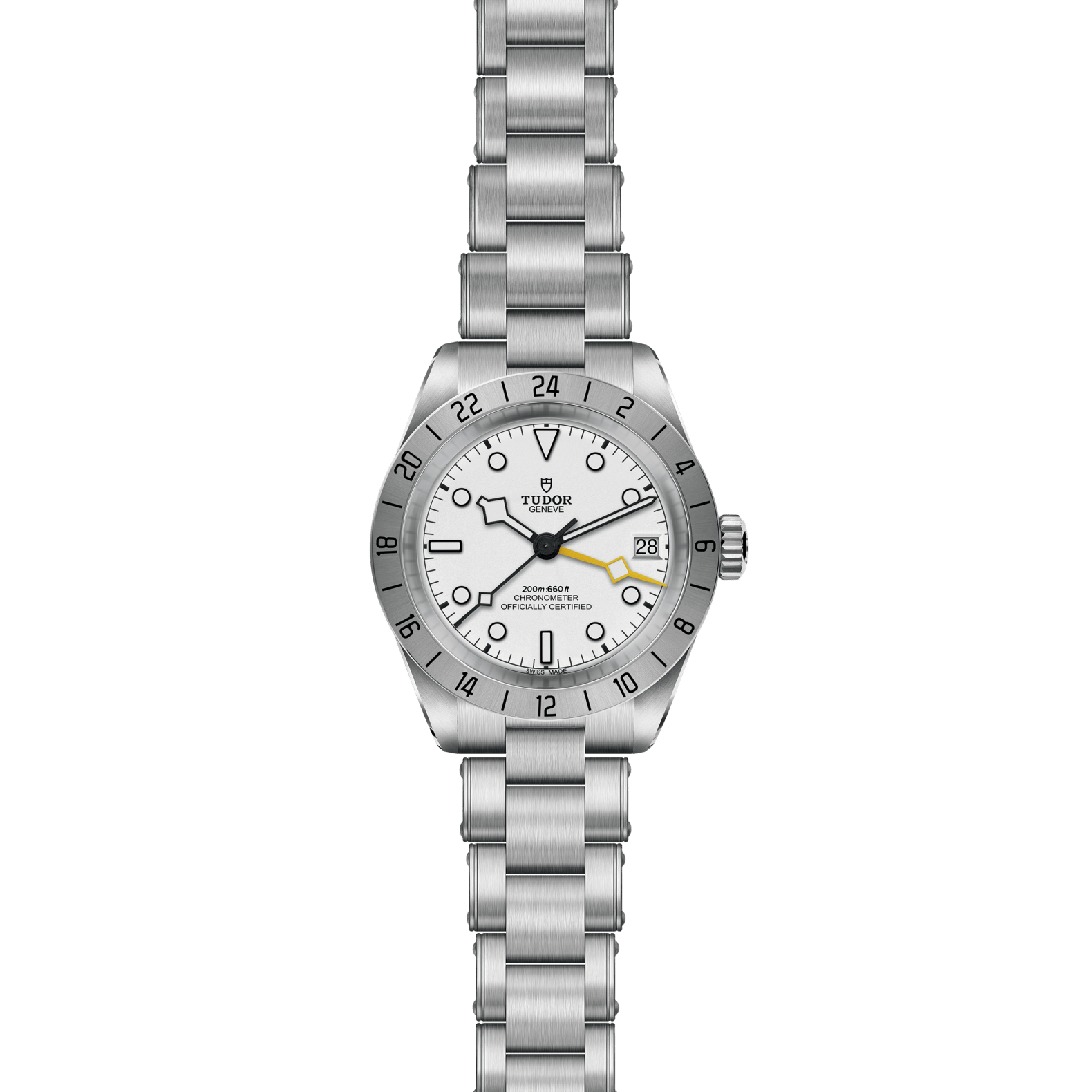 Black Bay Pro features a dual time zone function, a technical complication that establishes local time without losing sight of the time in another time zone. Compact, robust and sporty, this model boasts many unique aesthetic details and celebrates the spirit of the technical watches that TUDOR has produced for professionals throughout its history. Recognisable by its 24-hour graduated satin-brushed fixed bezel and its yellow 24-hour “Snowflake” hand, Black Bay Pro is powered by the TUDOR Manufacture Calibre MT5652 with built-in GMT function. This year sees an opaline dial join the range.