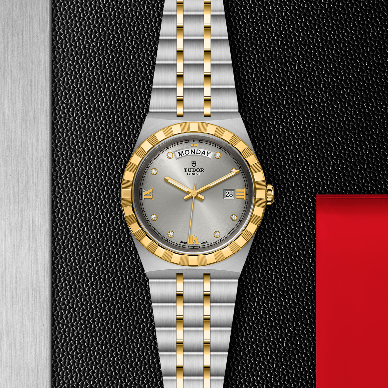 Royal is a name first used by TUDOR in the 1950s to emphasise the superior quality of its watches. The TUDOR Royal range is part of this heritage in that it offers automatic sport-chic watches with integrated bracelets that are as affordable as they are uncompromising. Cutting-edge technical performance and refined aesthetic are characteristic of this range, which sits at the crossroads between classic and sports watches and comes in stainless steel or stainless steel and gold and is offered in 4 sizes with a wide range of dials.