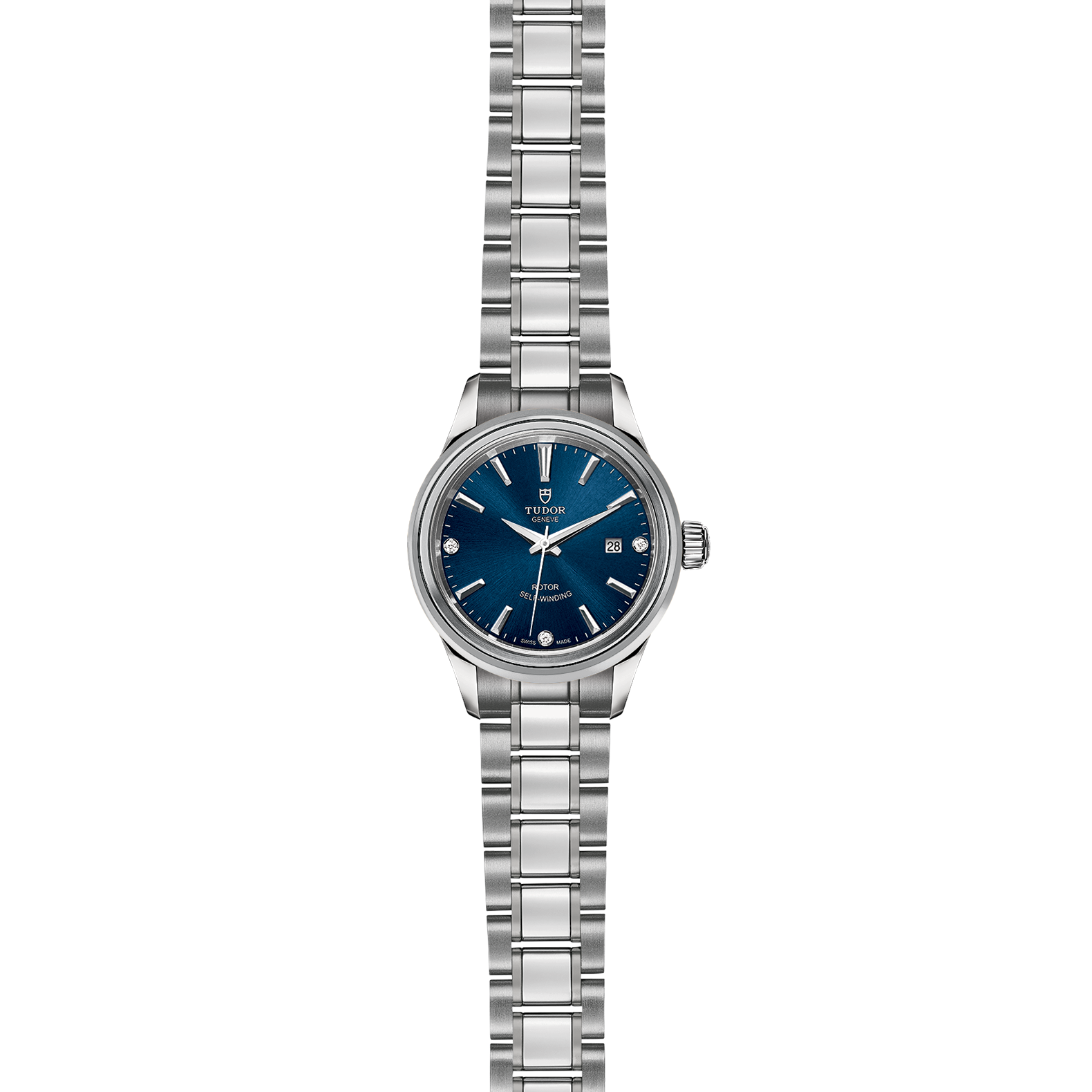 磨光及磨砂钢表壳,直径28毫米