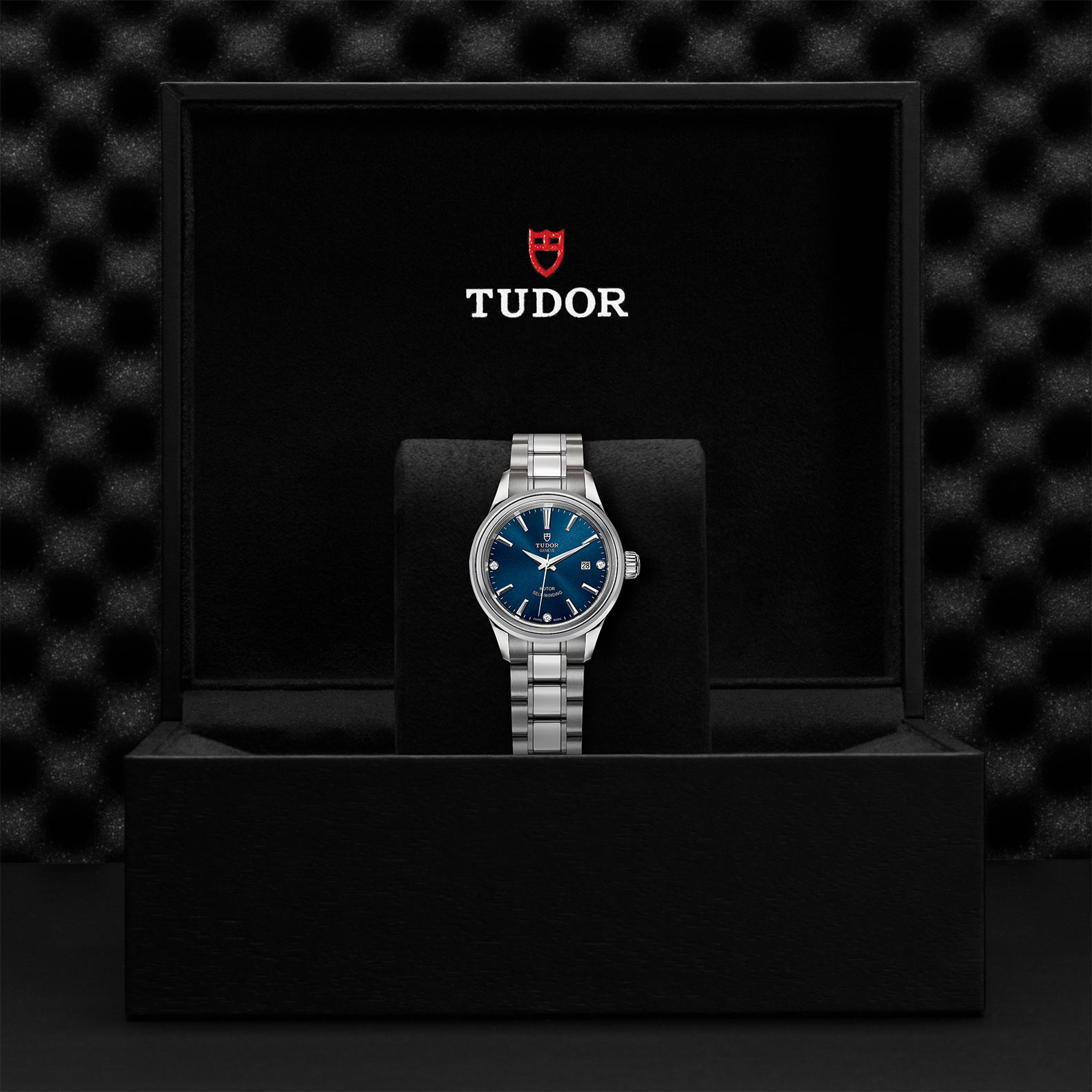 精钢旋入式上链錶冠,饰以帝舵表标志