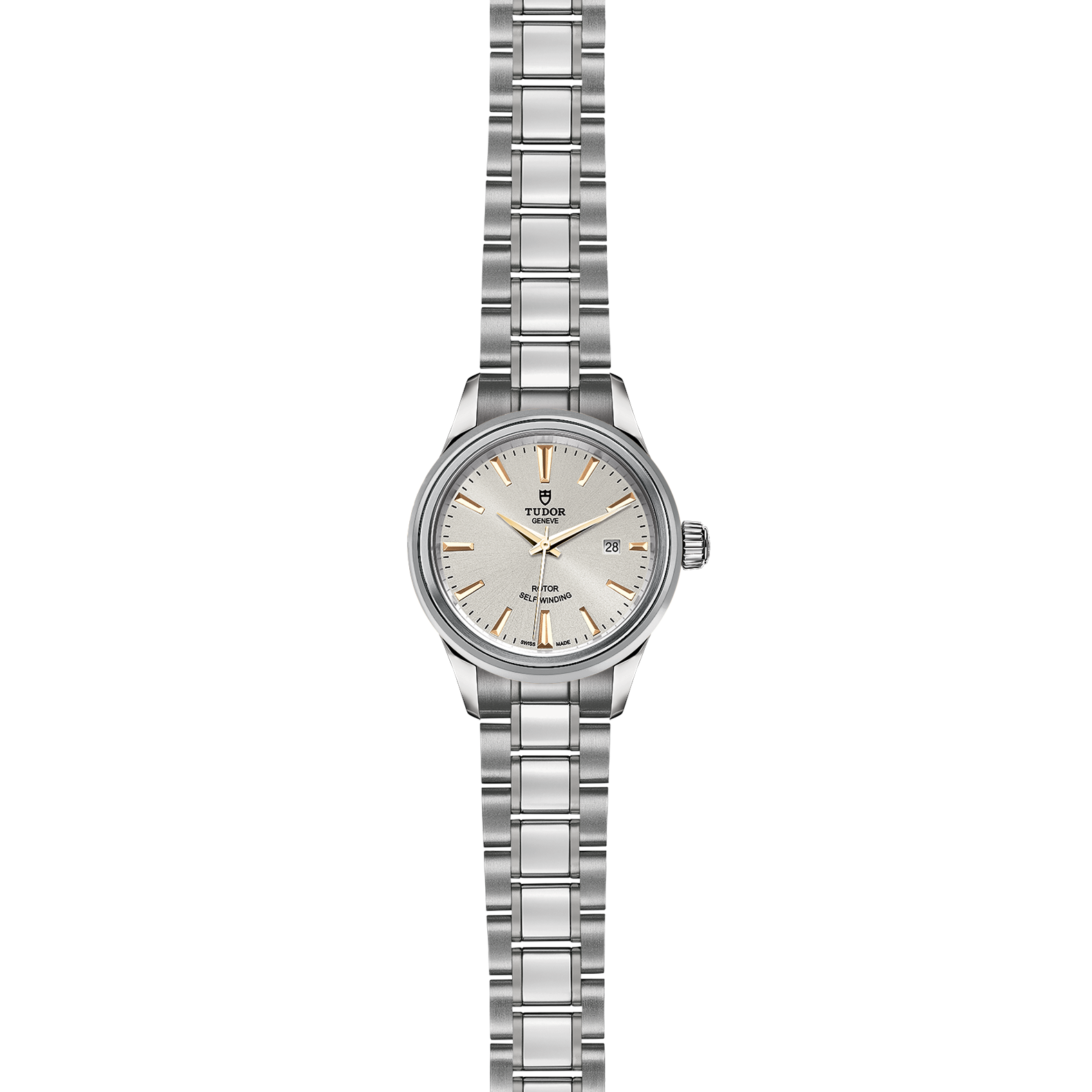 磨光及磨砂钢表壳,直径28毫米