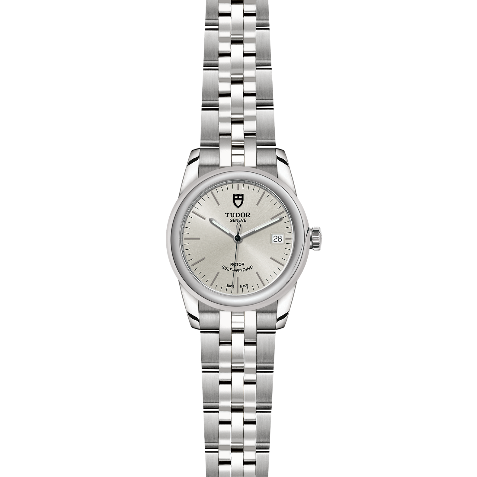 精钢旋入式上链錶冠,饰以帝舵表标志