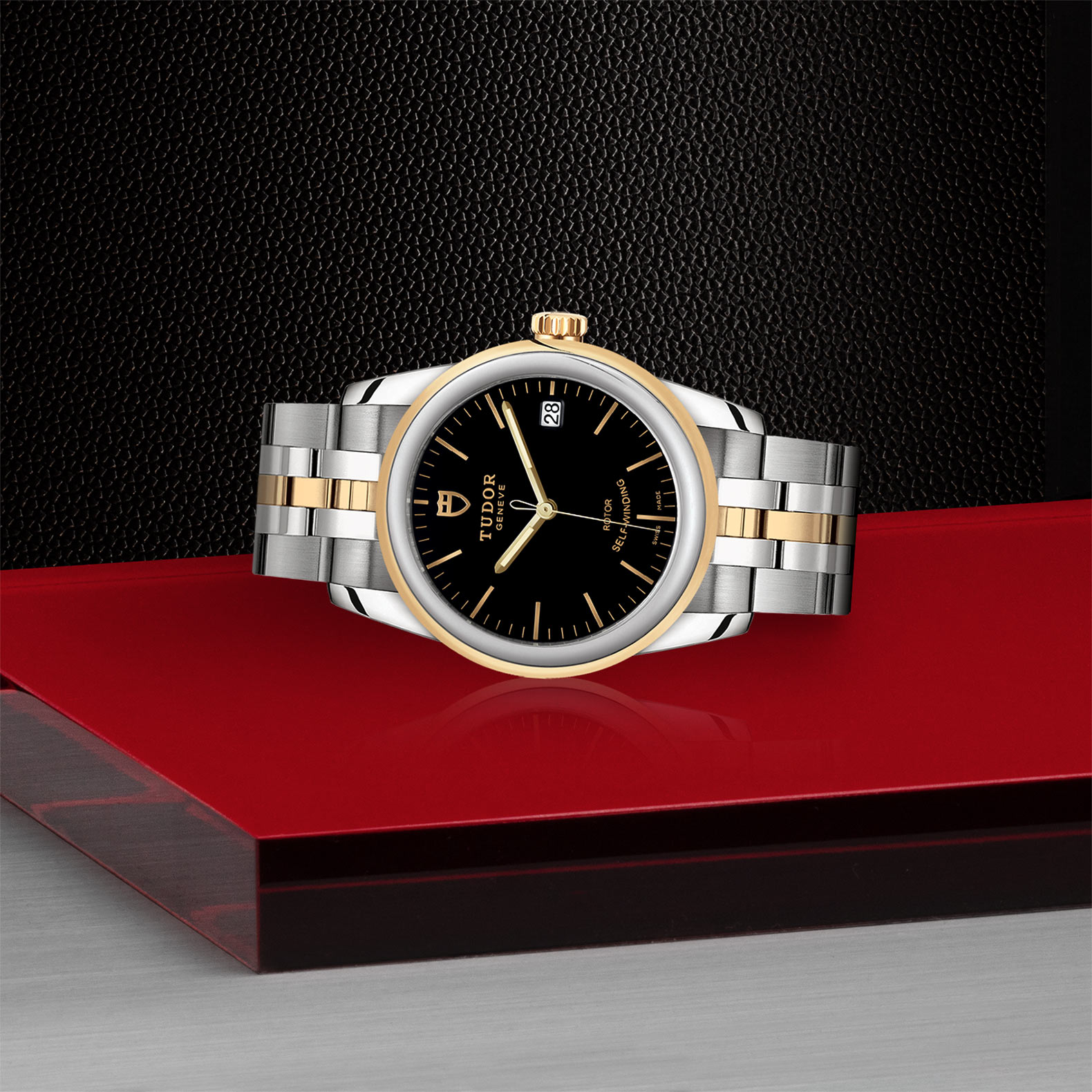 位于6点钟及12点钟位置的首节中间链节由实心黄金制成;其余中间链节由精钢或钢芯及0.2毫米黄金包金制成;摺扣及保险扣