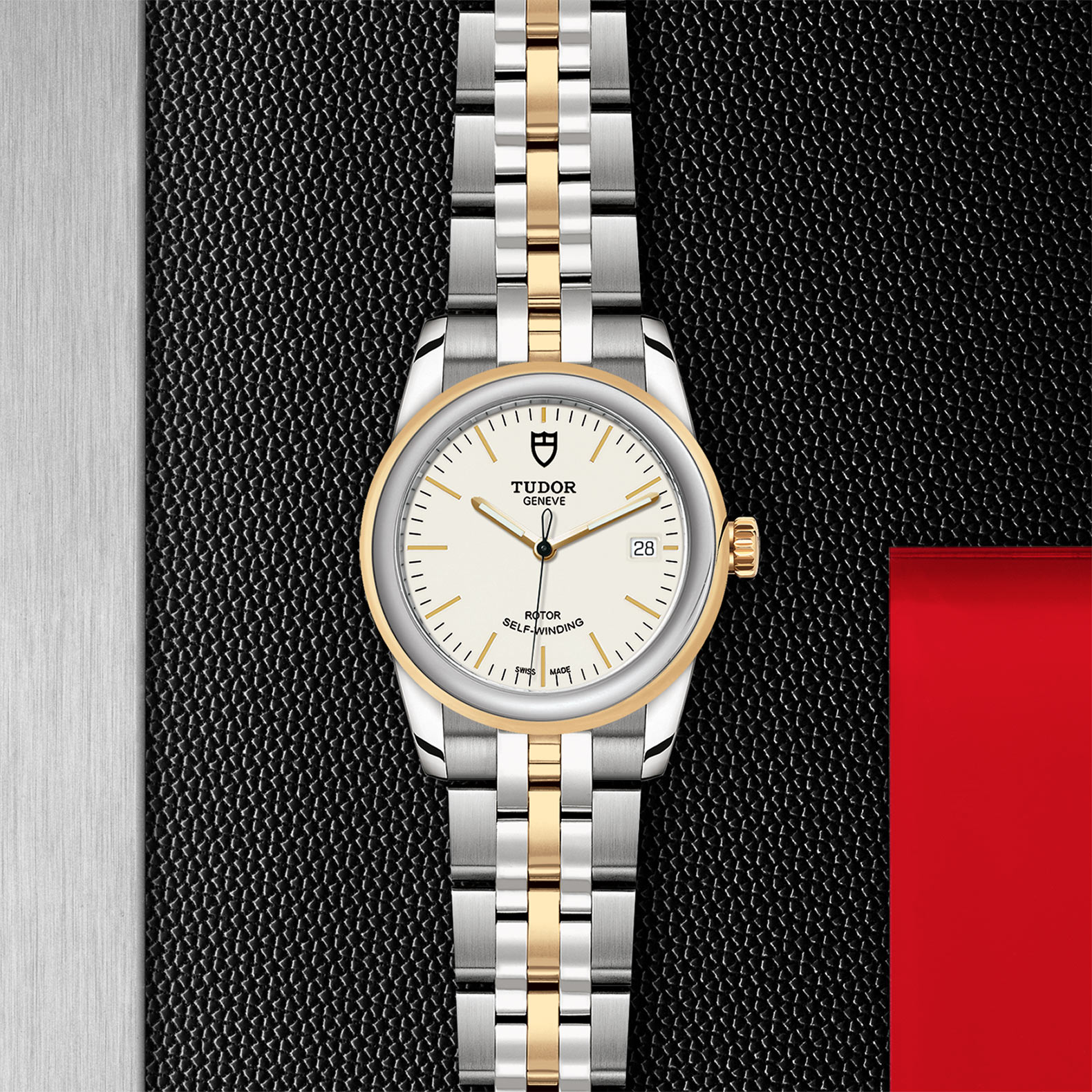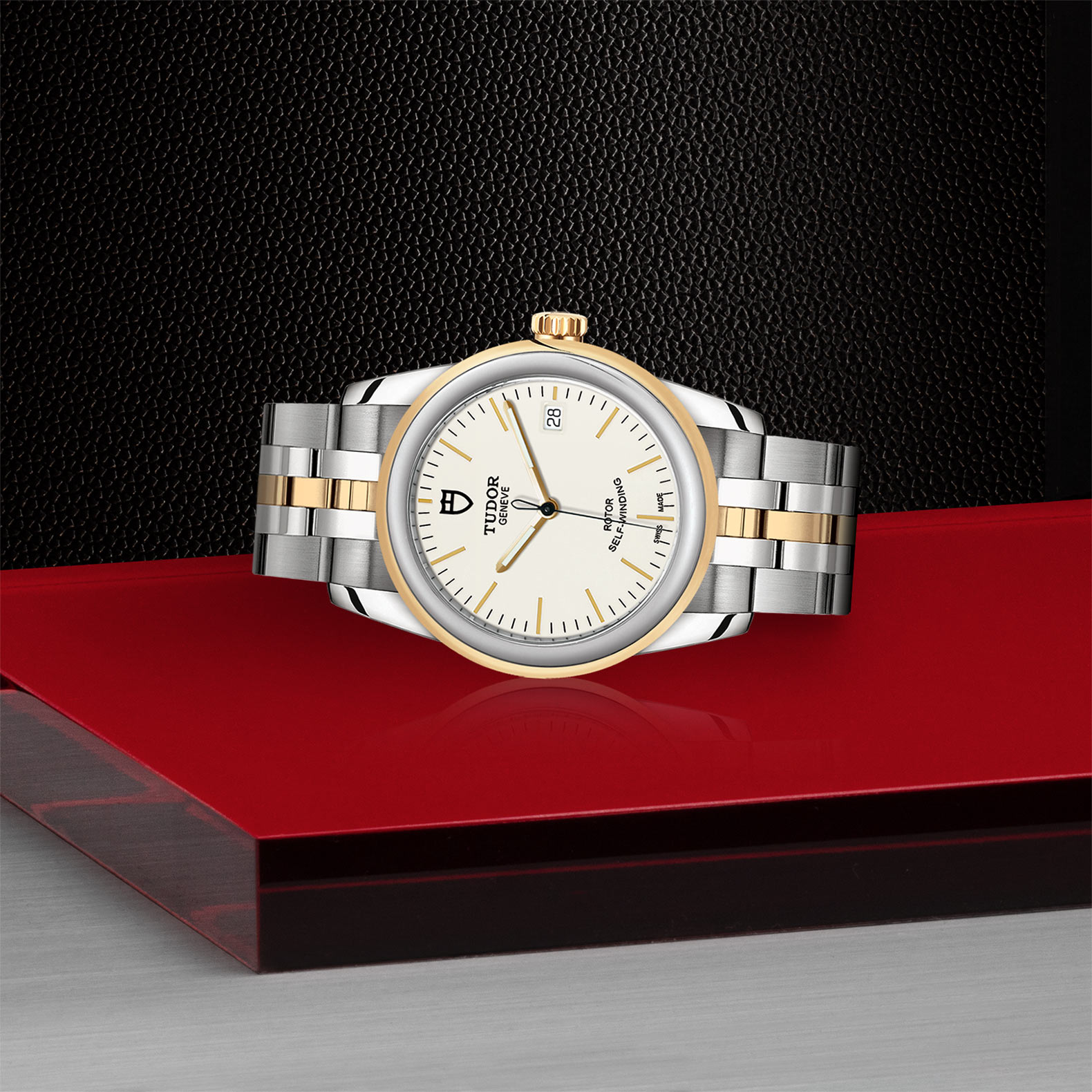 位于6点钟及12点钟位置的首节中间链节由实心黄金制成;其余中间链节由精钢或钢芯及0.2毫米黄金包金制成;摺扣及保险扣