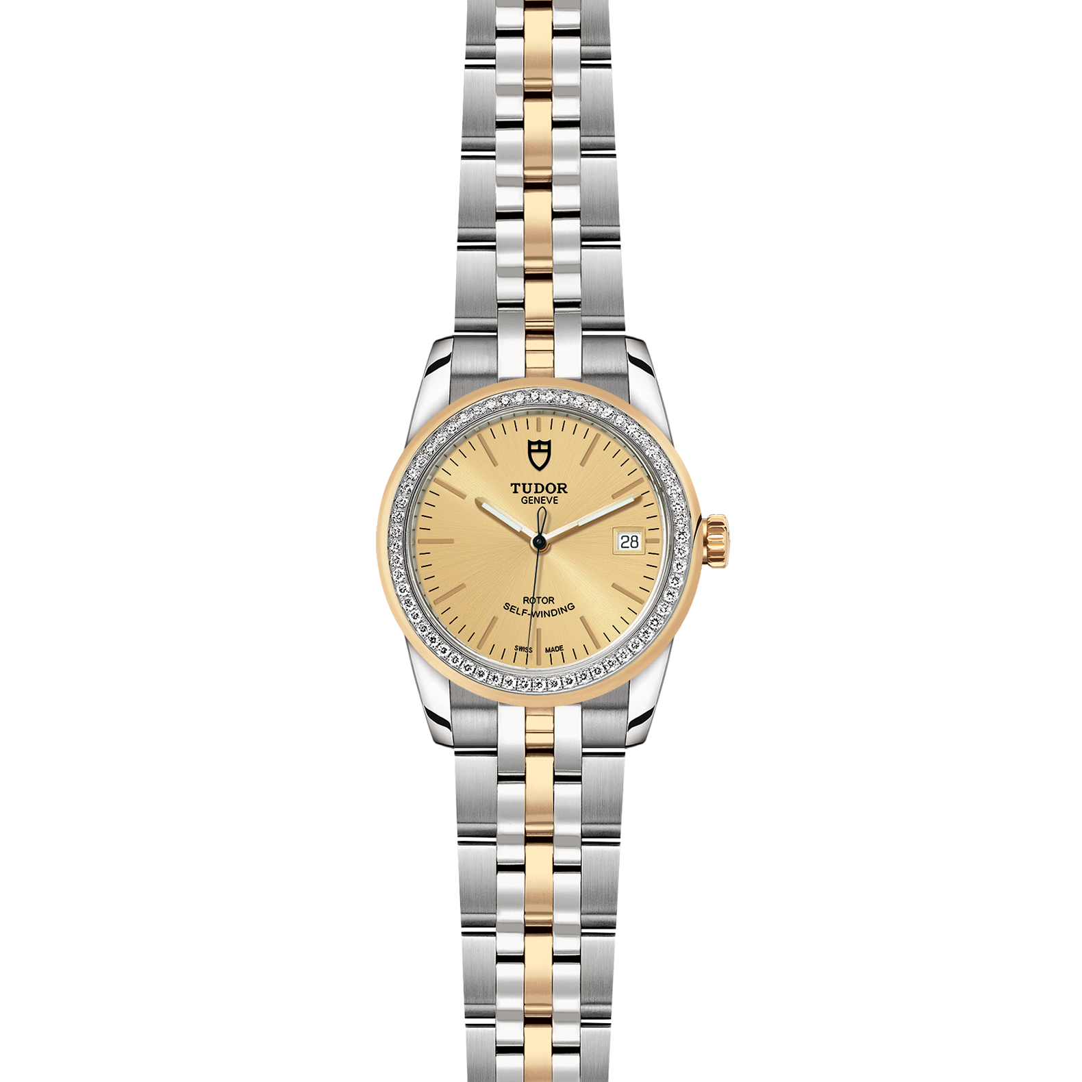 位于6点钟及12点钟位置的首节中间链节由实心黄金制成;其余中间链节由精钢或钢芯及0.2毫米黄金包金制成;摺扣及保险扣