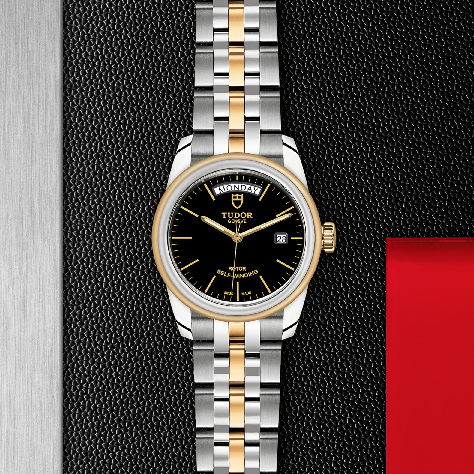 位於6點鐘及12點鐘位置的首節中間鏈節由實心黃金製成;其餘中間鏈節由精鋼或鋼芯及0.2毫米黃金包金製成;摺扣及保險扣