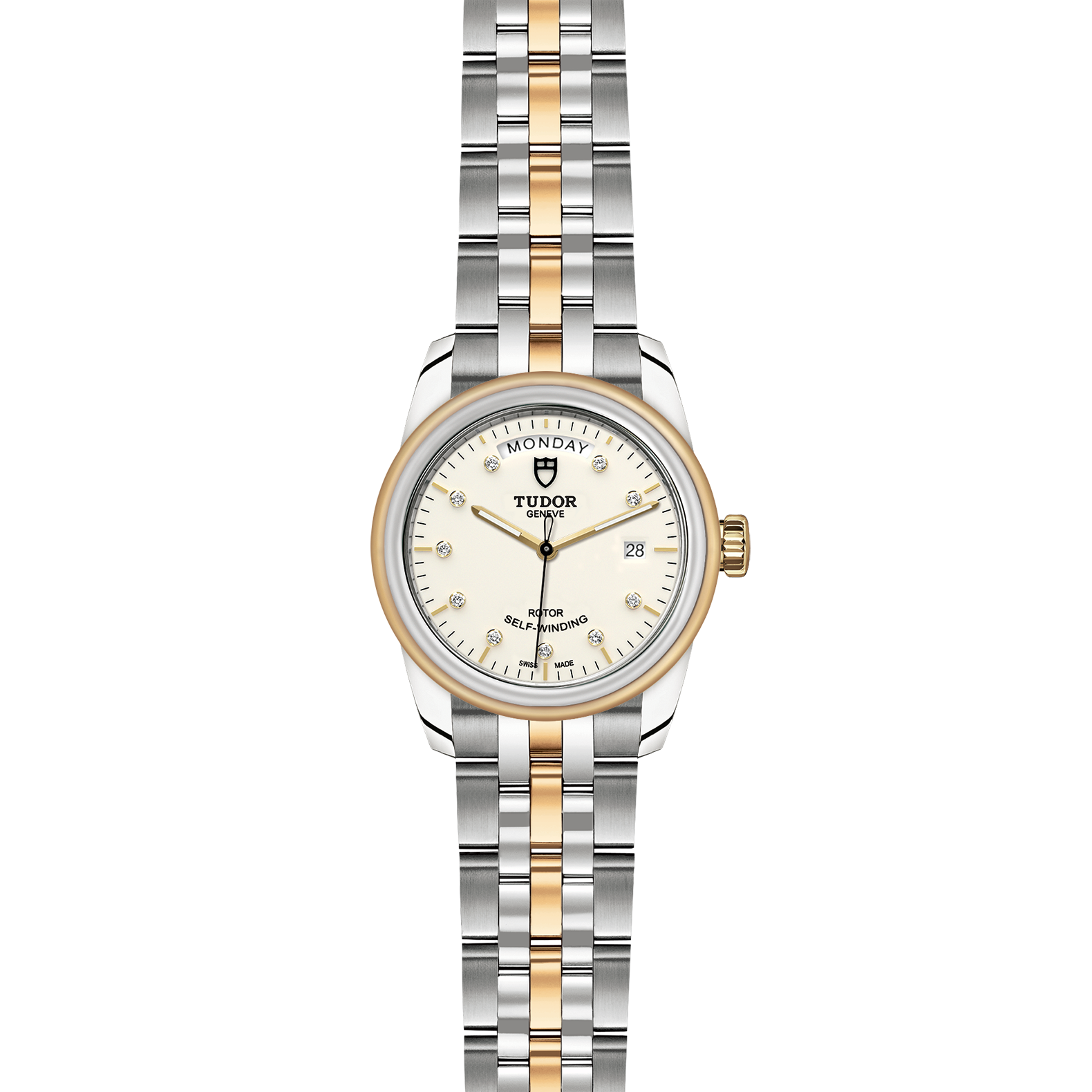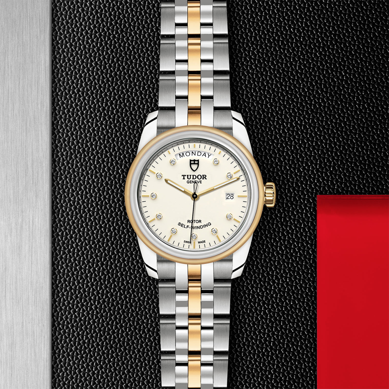 位於6點鐘及12點鐘位置的首節中間鏈節由實心黃金製成;其餘中間鏈節由精鋼或鋼芯及0.2毫米黃金包金製成;摺扣及保險扣
