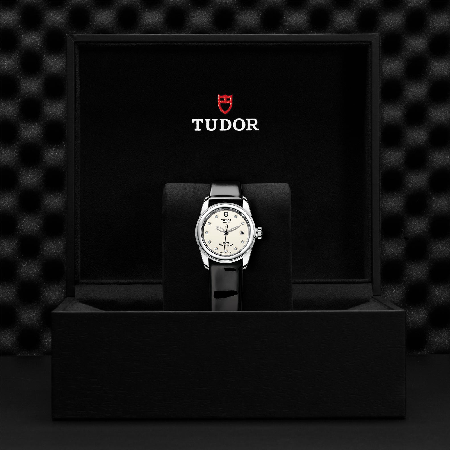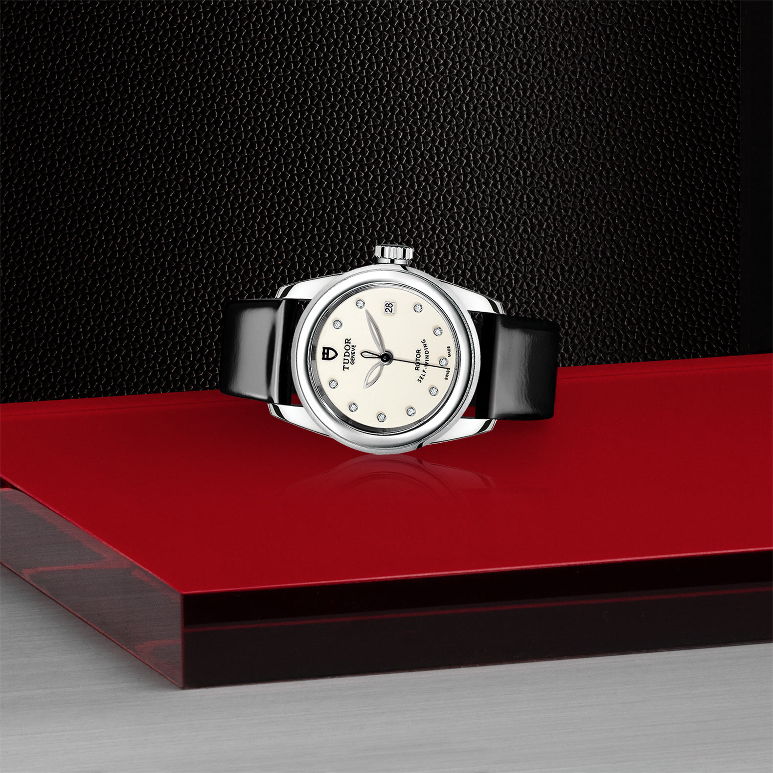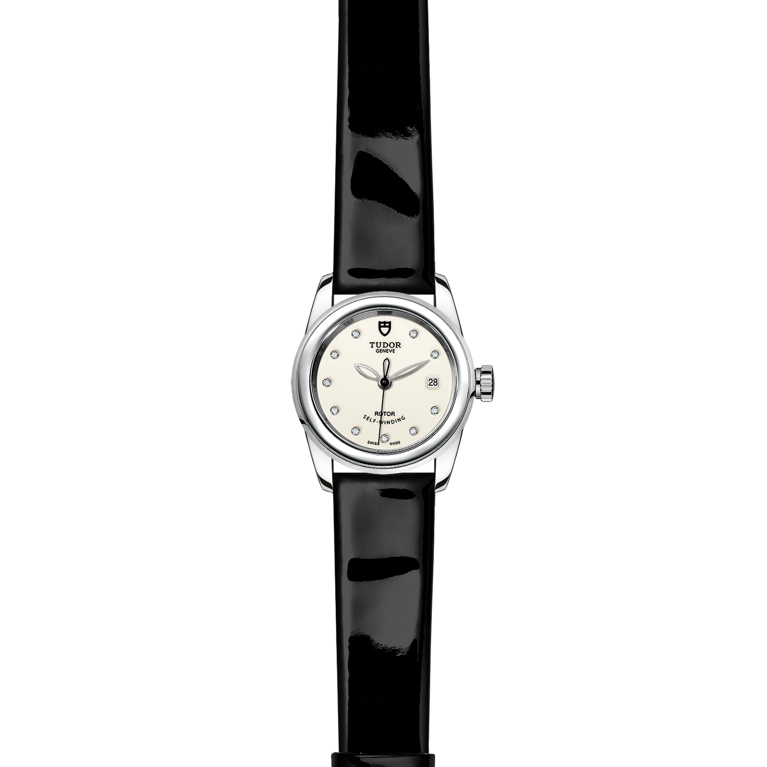 黑色漆皮錶帶,配摺扣