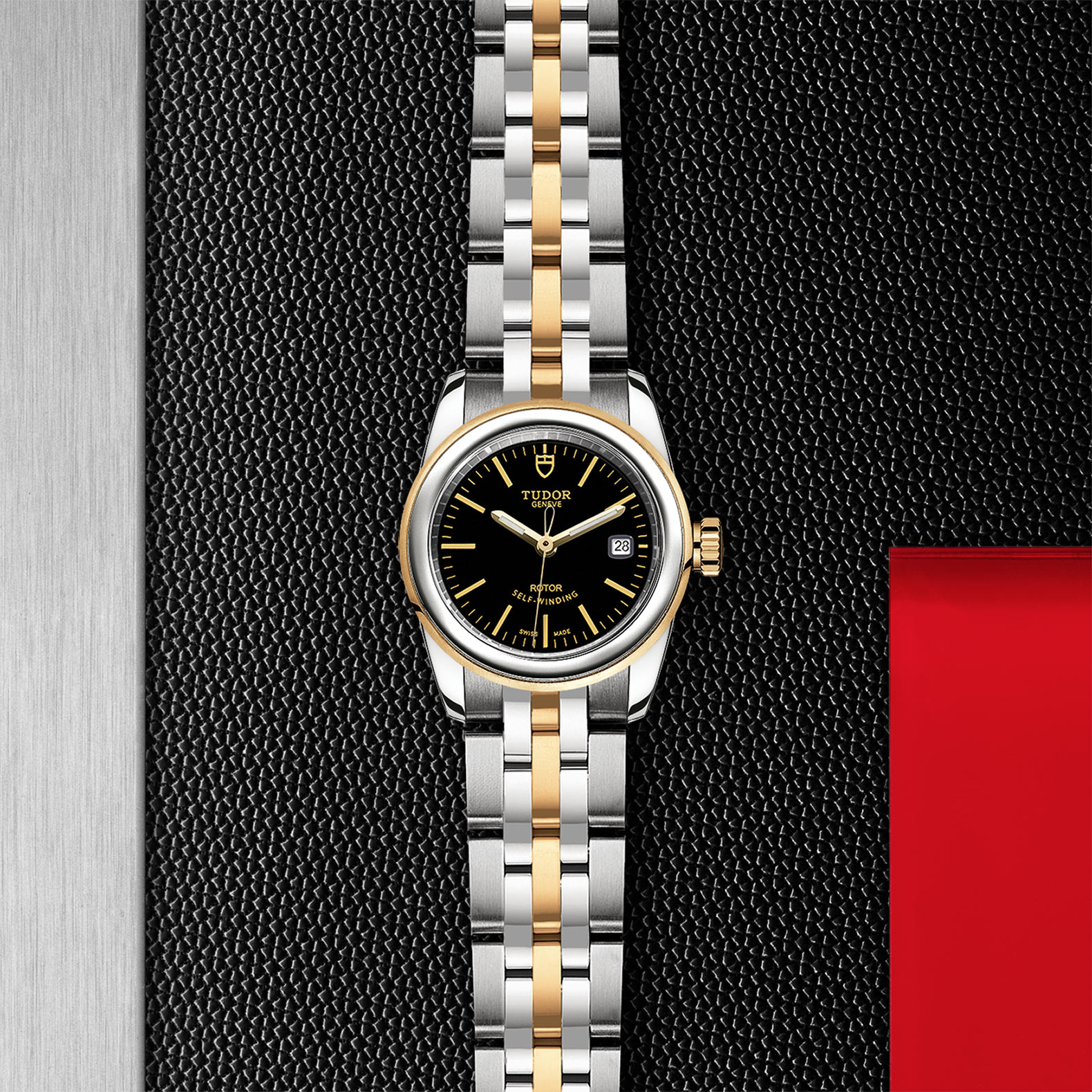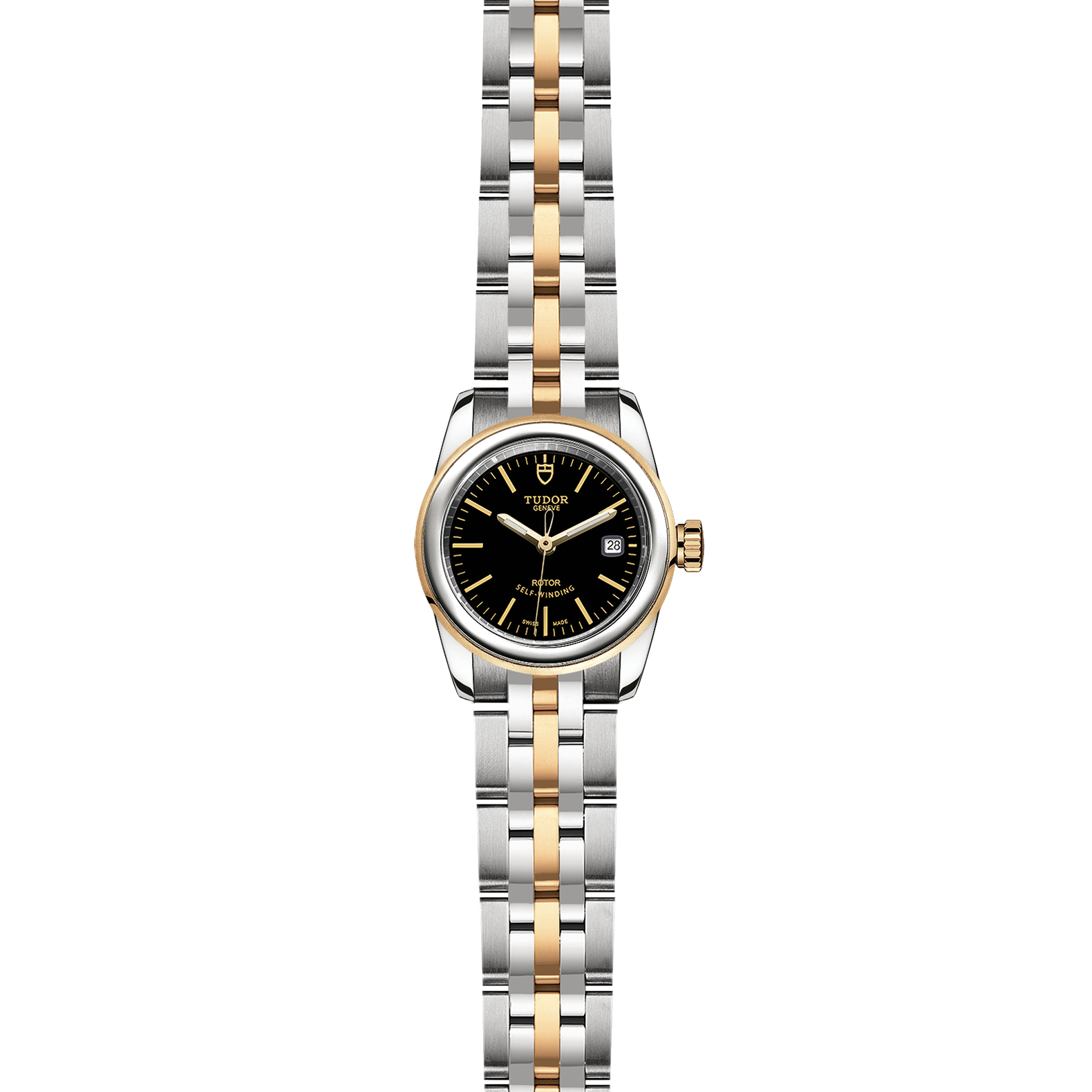 位於6點鐘及12點鐘位置的首節中間鏈節由實心黃金製成;其餘中間鏈節由精鋼或鋼芯及0.2毫米黃金包金製成;摺扣及保險扣
