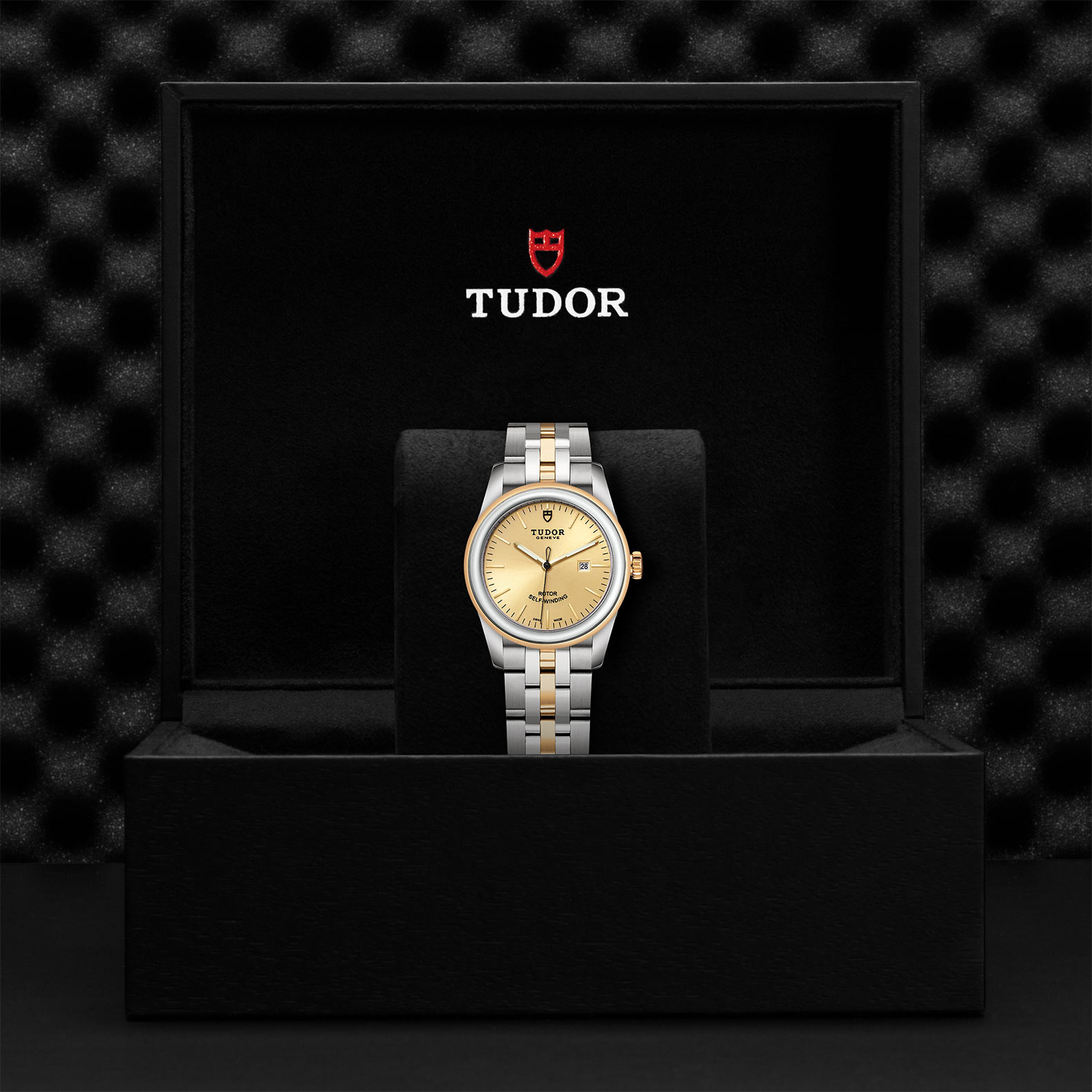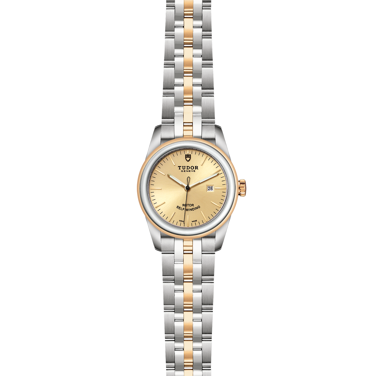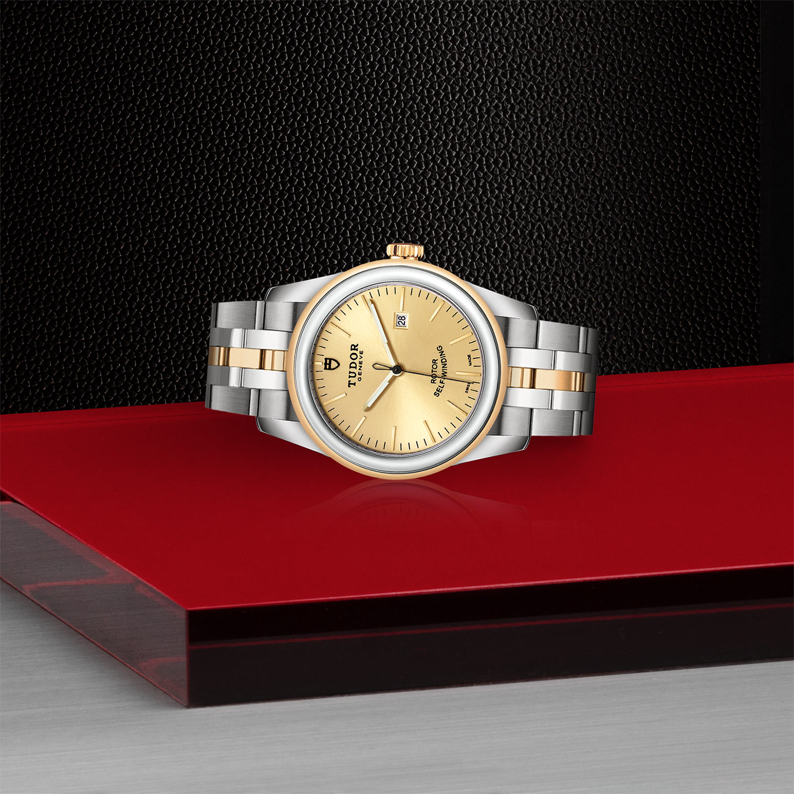 位於6點鐘及12點鐘位置的首節中間鏈節由實心黃金製成;其餘中間鏈節由精鋼或鋼芯及0.2毫米黃金包金製成;摺扣及保險扣