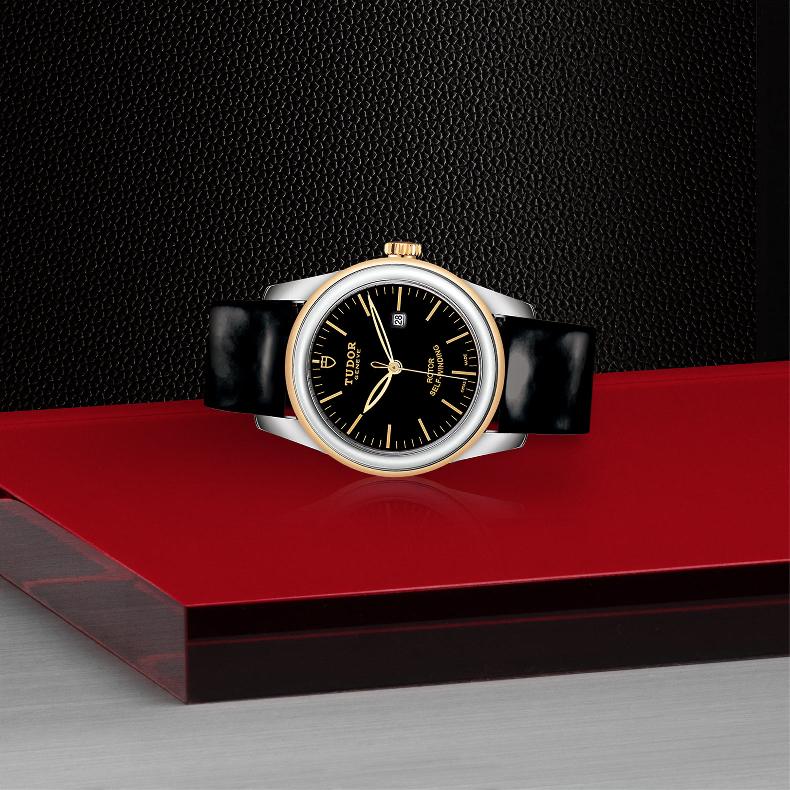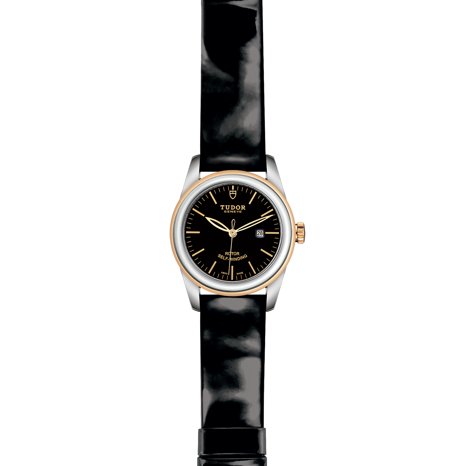 黑色漆皮錶帶,配摺扣