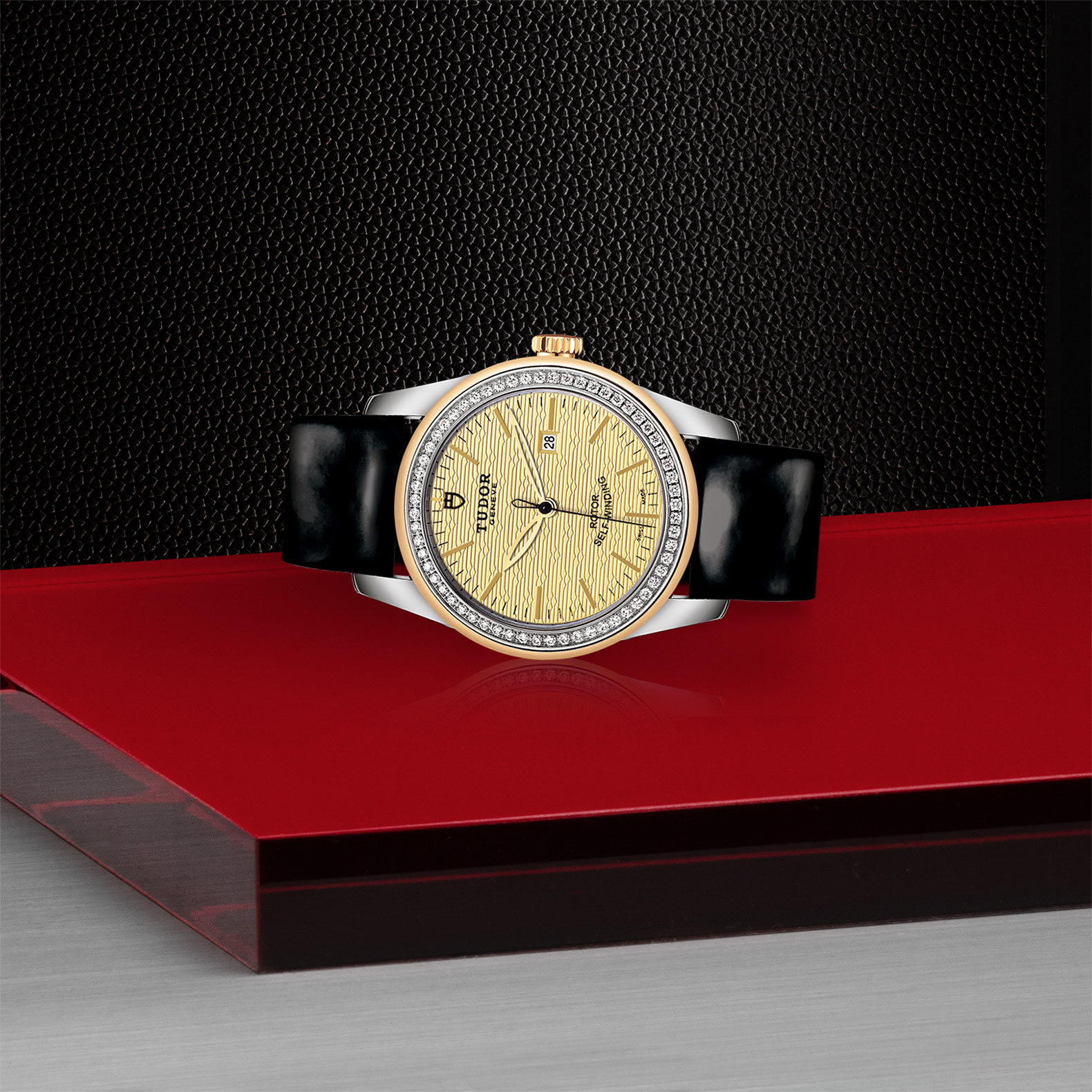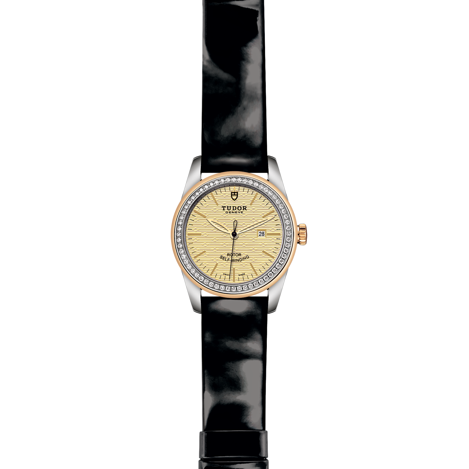黑色漆皮錶帶,配摺扣