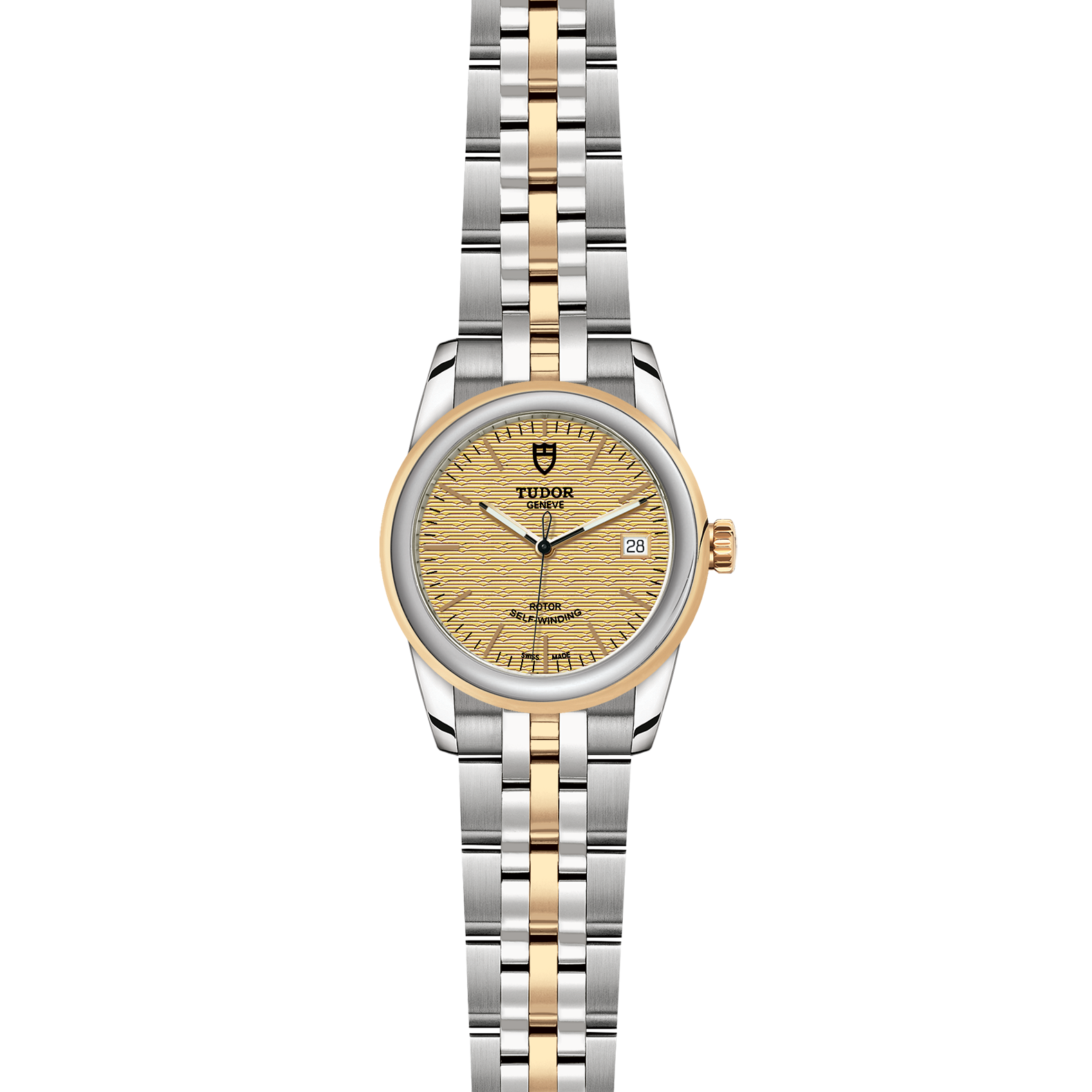 位於6點鐘及12點鐘位置的首節中間鏈節由實心黃金製成;其餘中間鏈節由精鋼或鋼芯及0.2毫米黃金包金製成;摺扣及保險扣