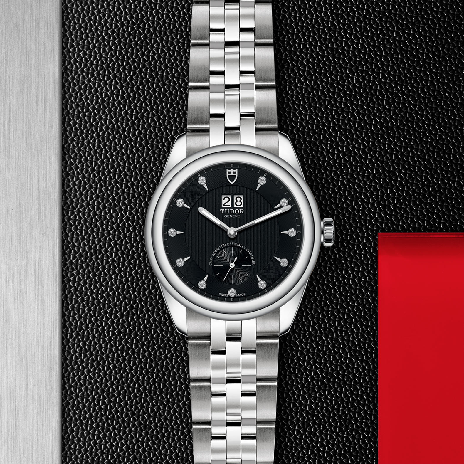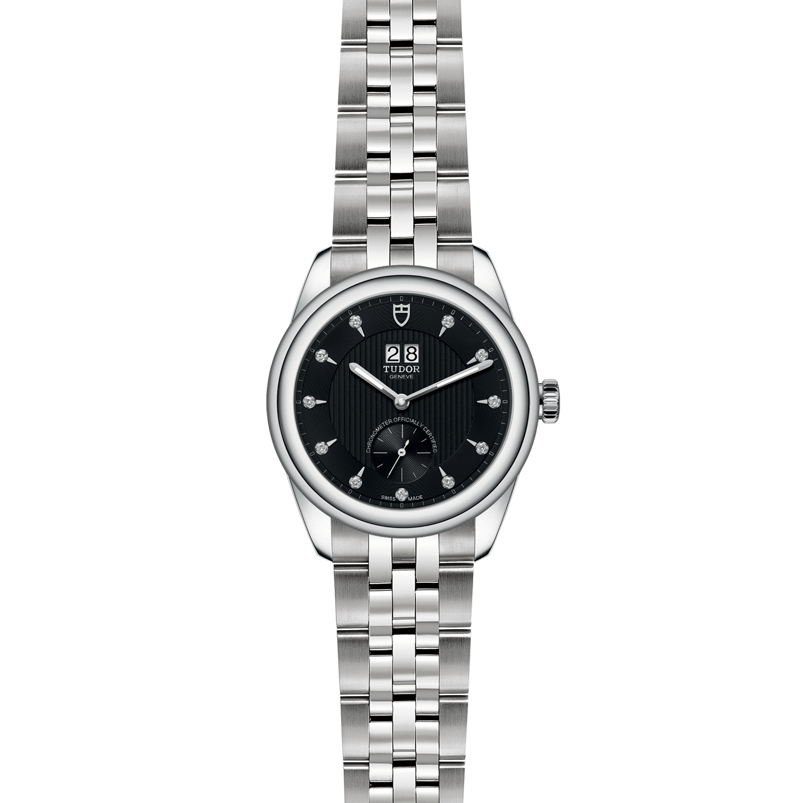 黑色配鍍銠或鍍金鐘點標記,鑲11顆鑽石