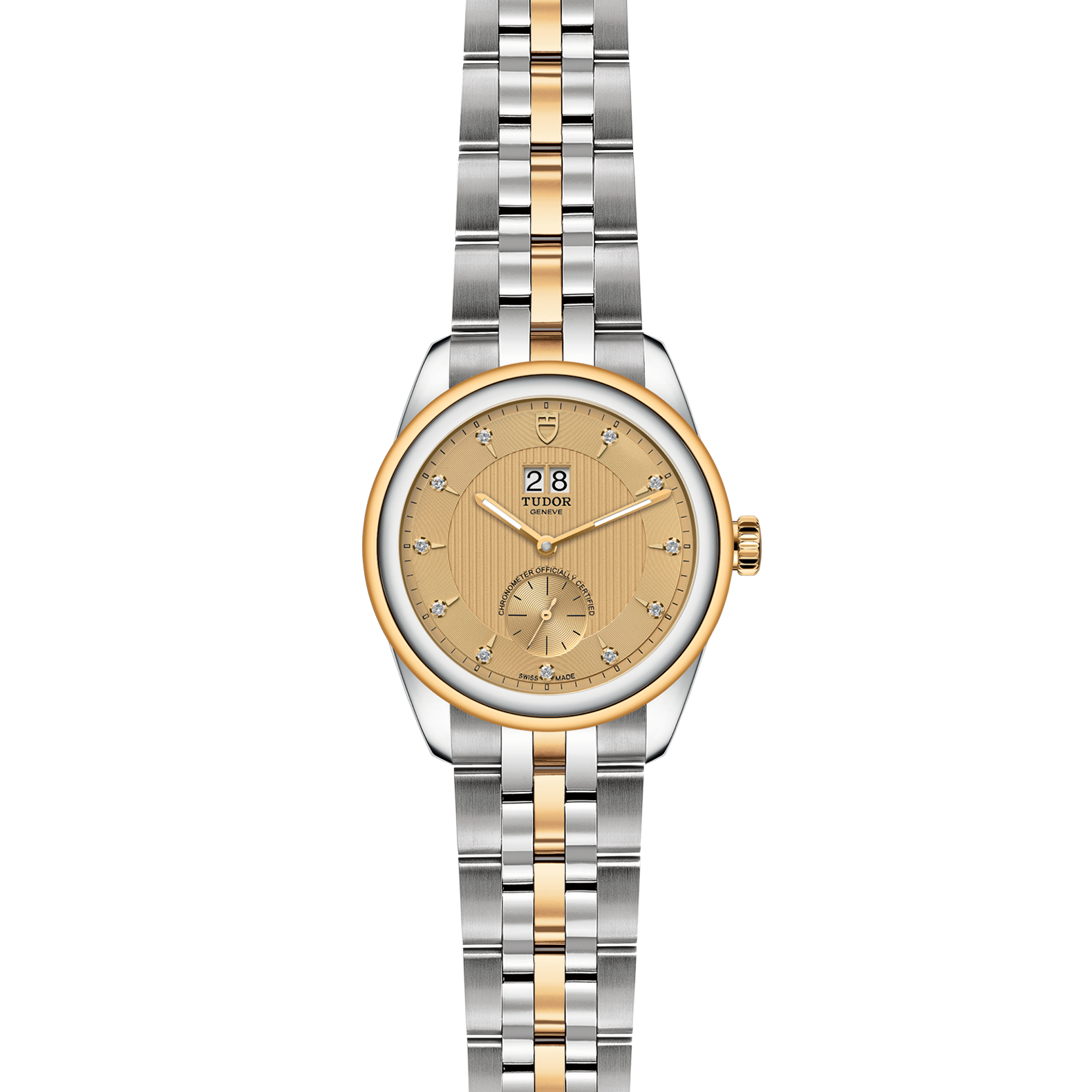 香檳色配鍍黃金鐘點標記,鑲11顆鑽石