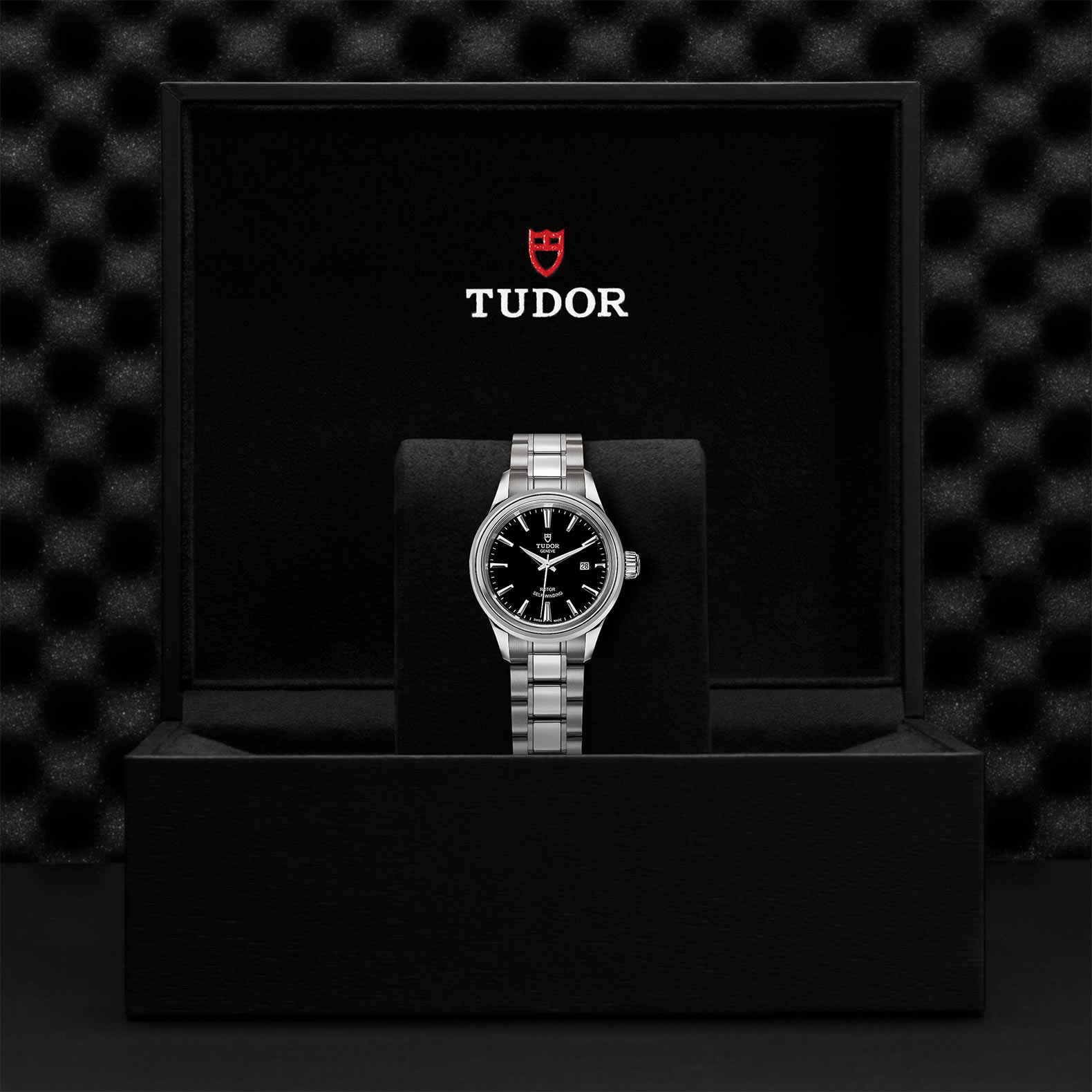 精鋼旋入式上鏈錶冠,飾以帝舵表標誌